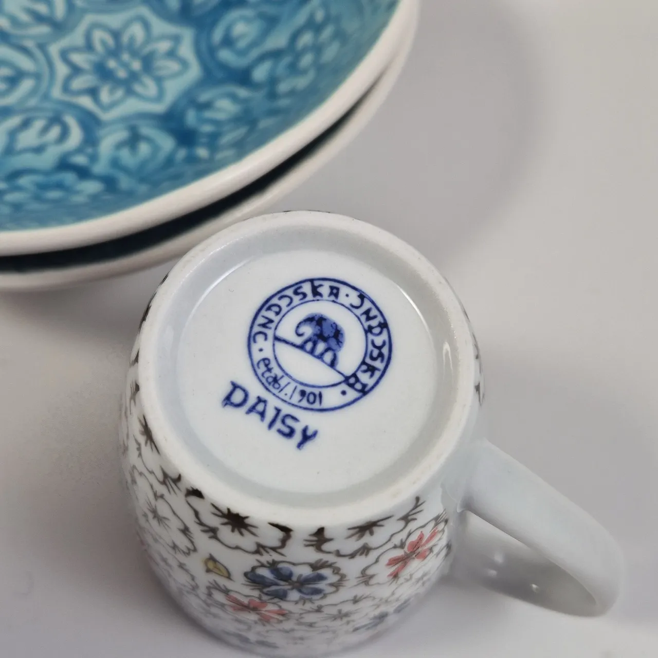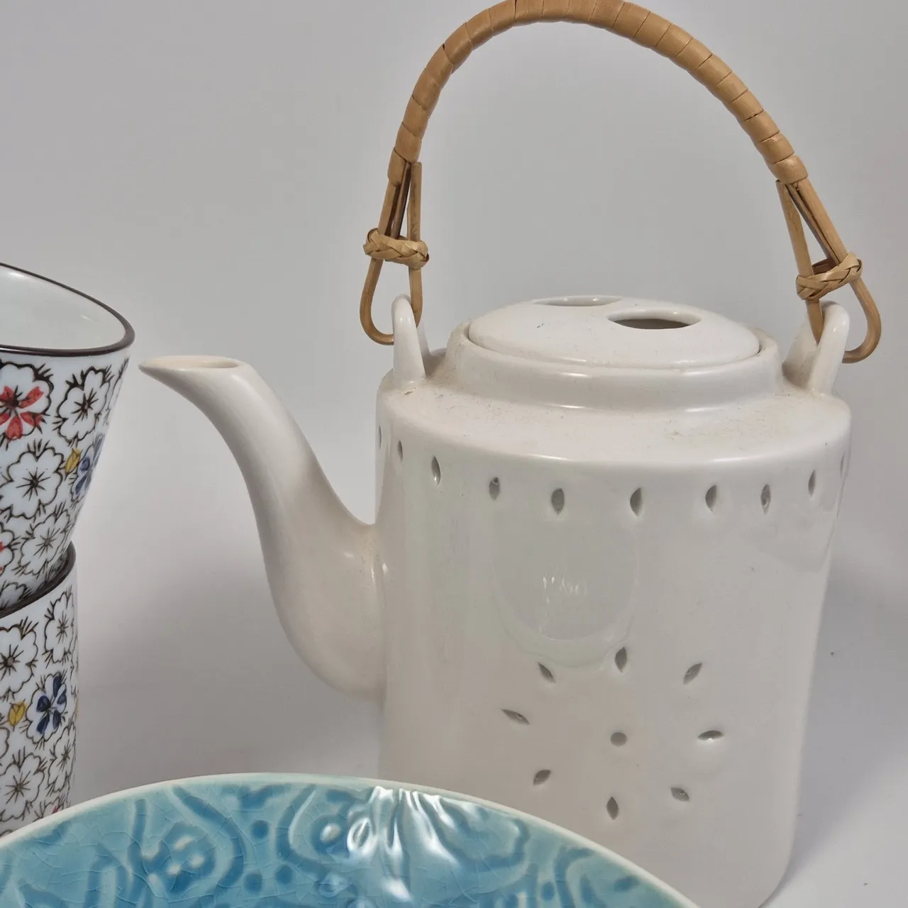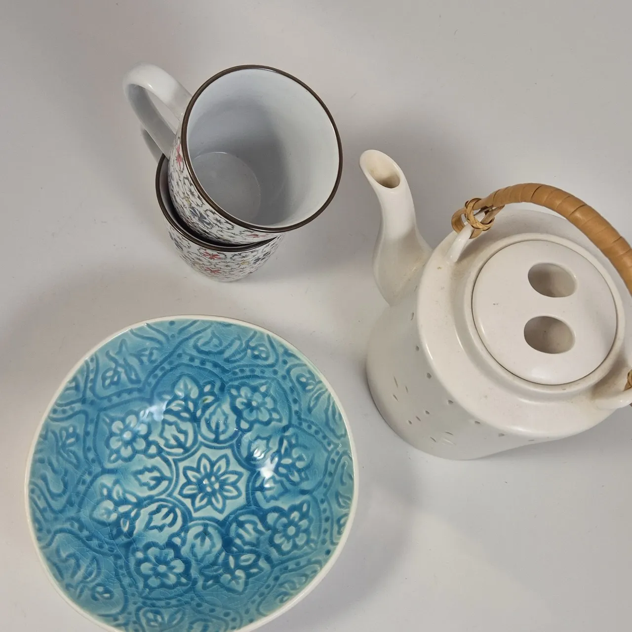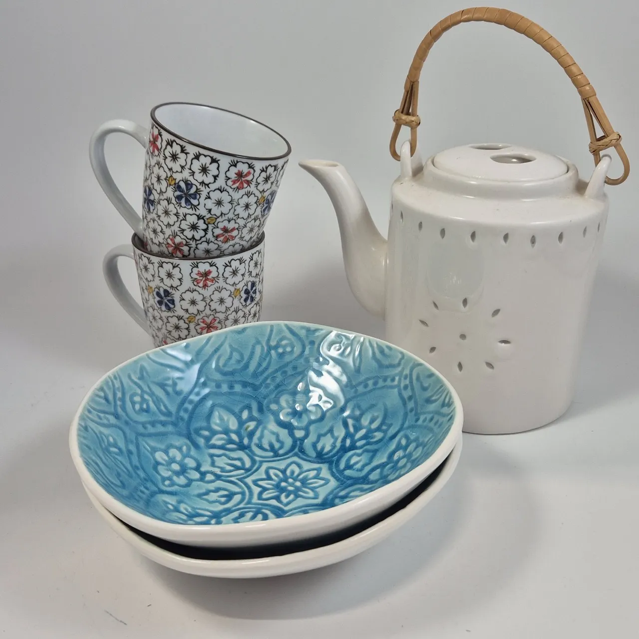 Tekanna Indiska ., 2st turkosa skålar, 2st muggar