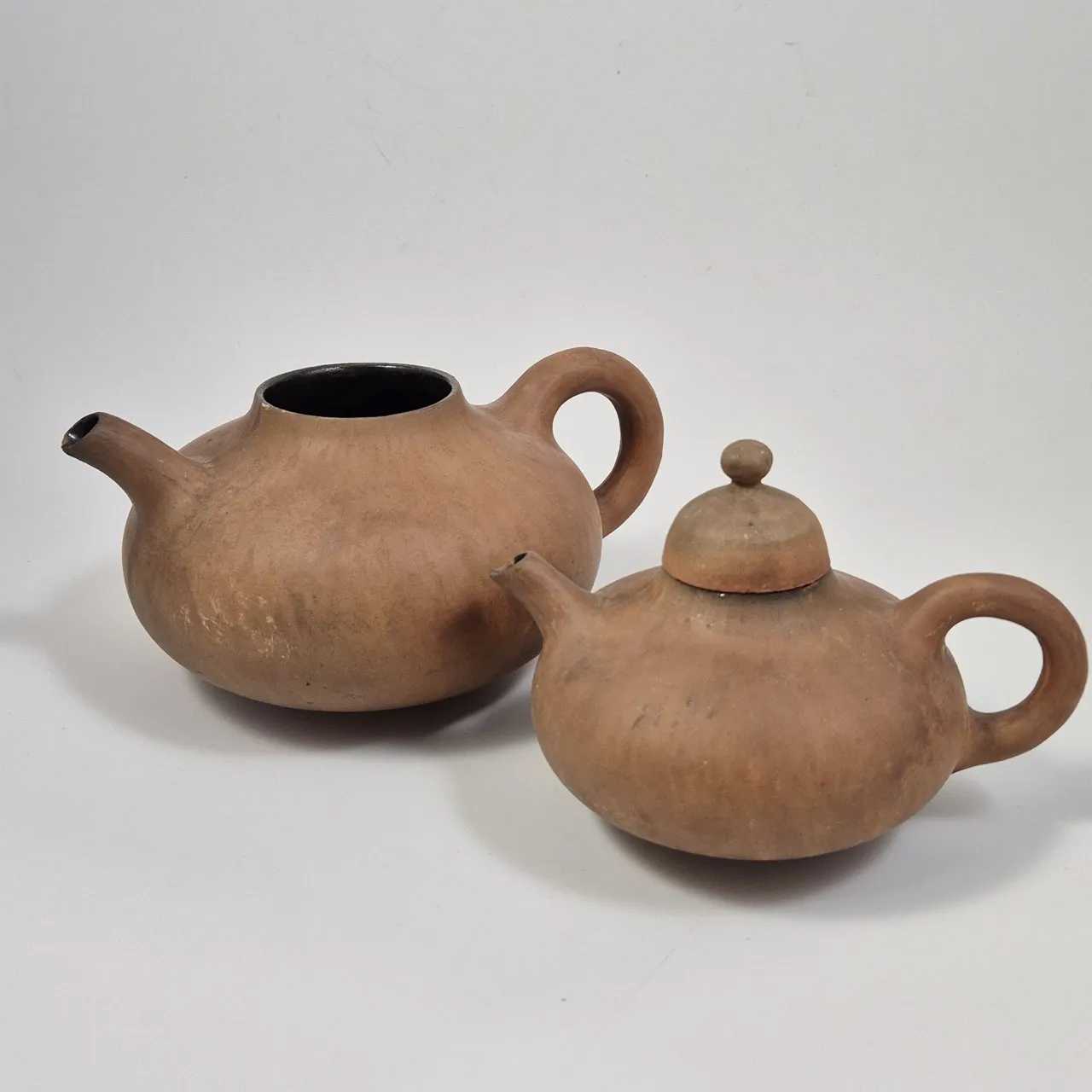 2st otroliga tekannor i stengods. Ett lock fattas men kannan är fortfarande otrolig och tjänar bra som vattenkanna om inte annat :) Båda piparna har nagg