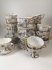 Extra allt med blomstermönster, pärlemo skimmer, på fot, spejsade handtag, tunna, stora och många