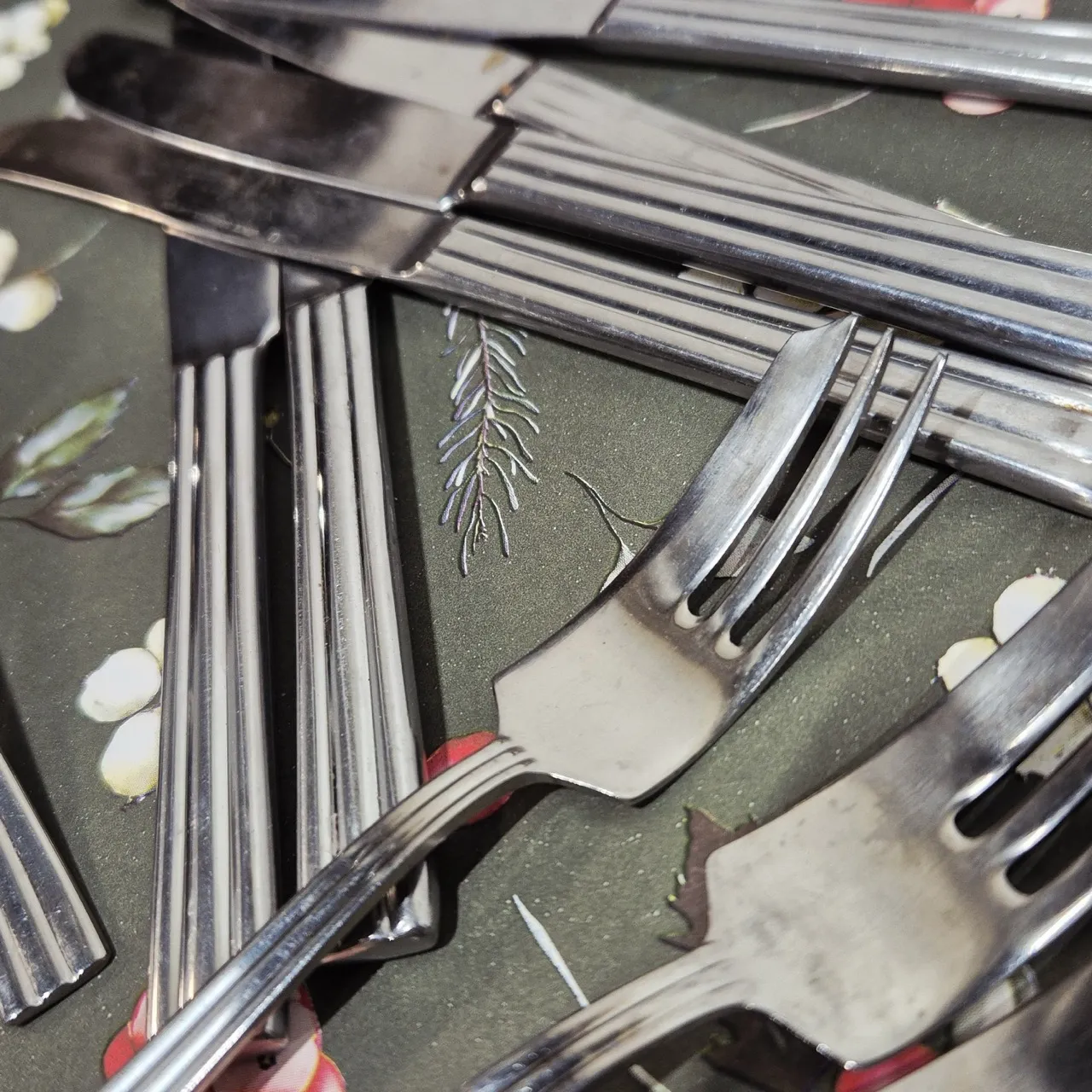 3st tårtgafflar, 6st förrättsknivar, 6st kaffeskedar