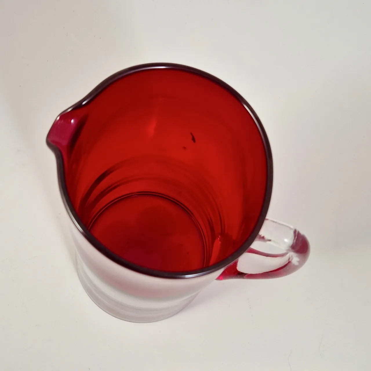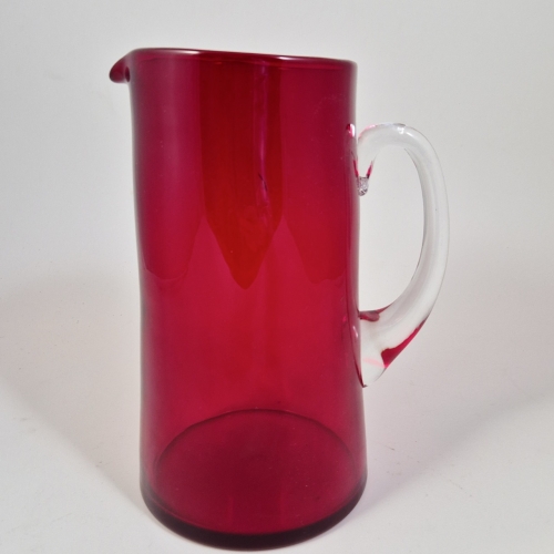 Vackert röd tillbringare i glas. H. 22.5cm