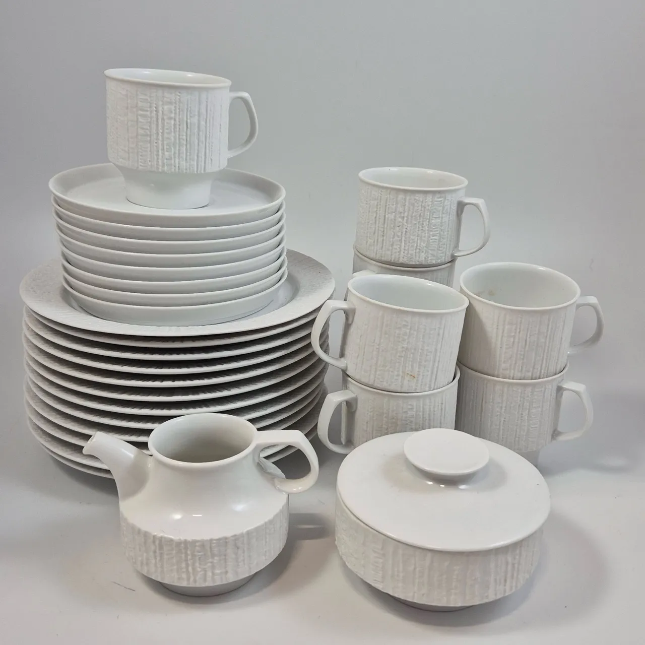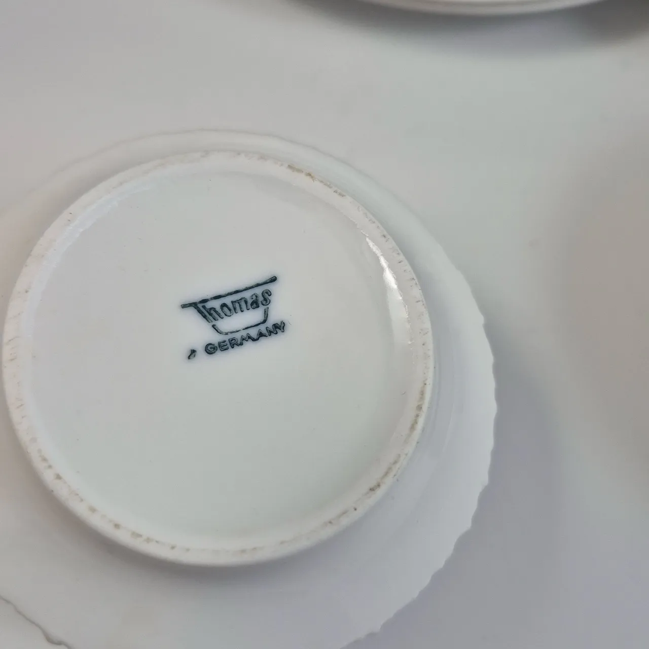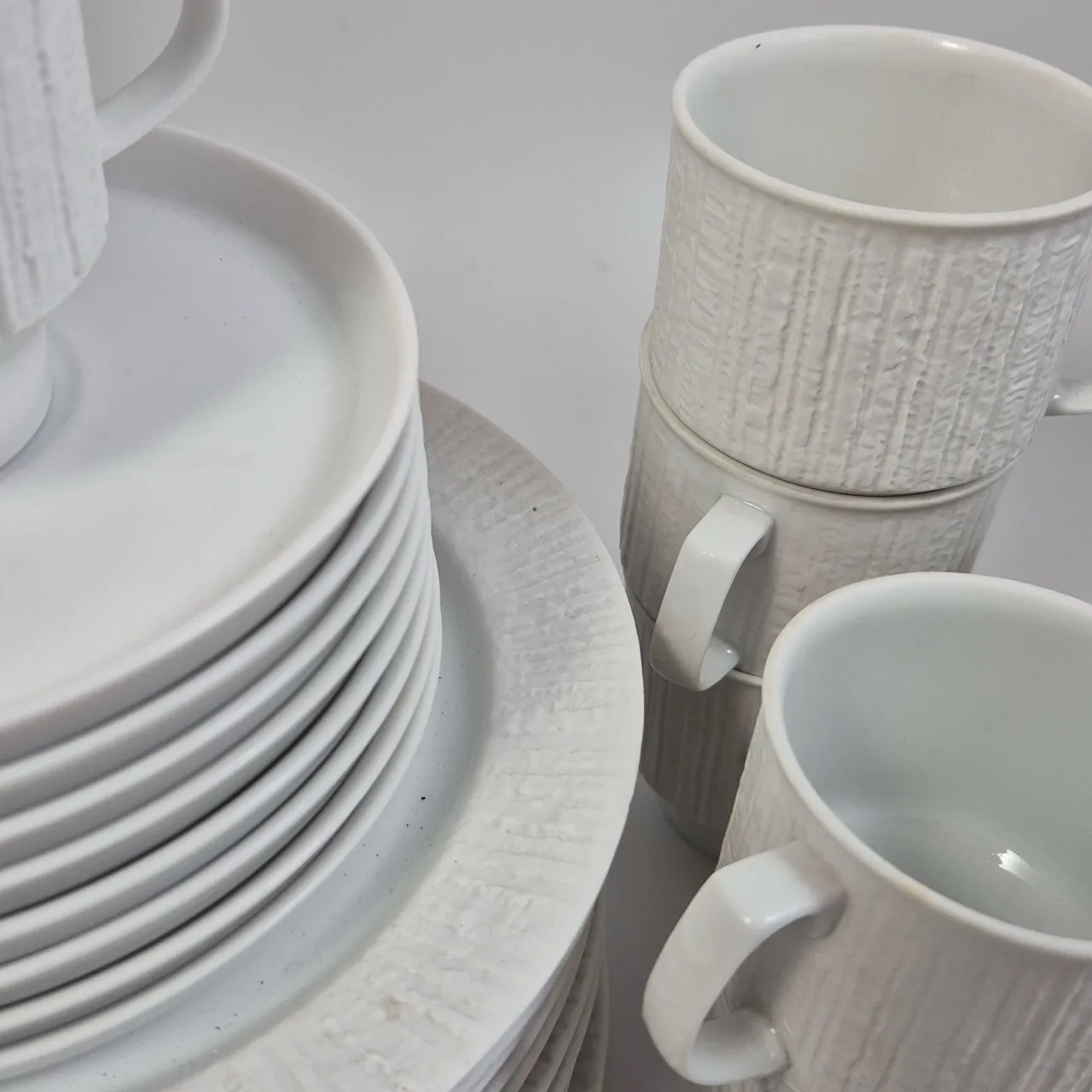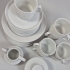 Kaffekoppar med fat 8st, sockerskål, gräddkanna, assietter 12st