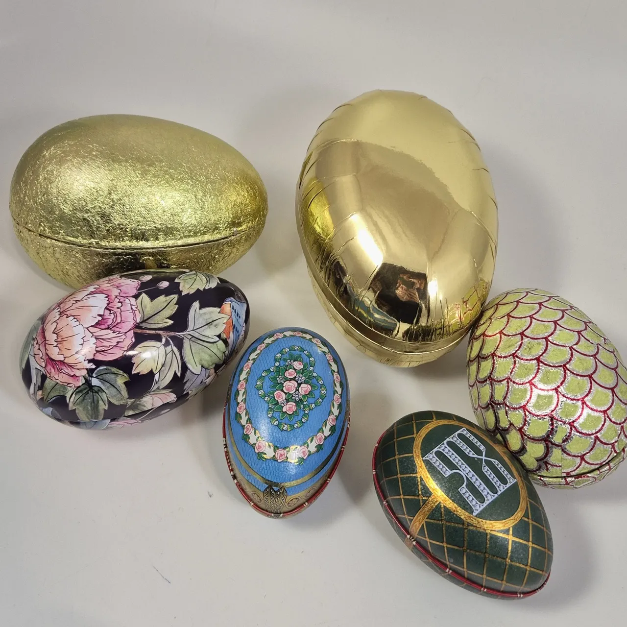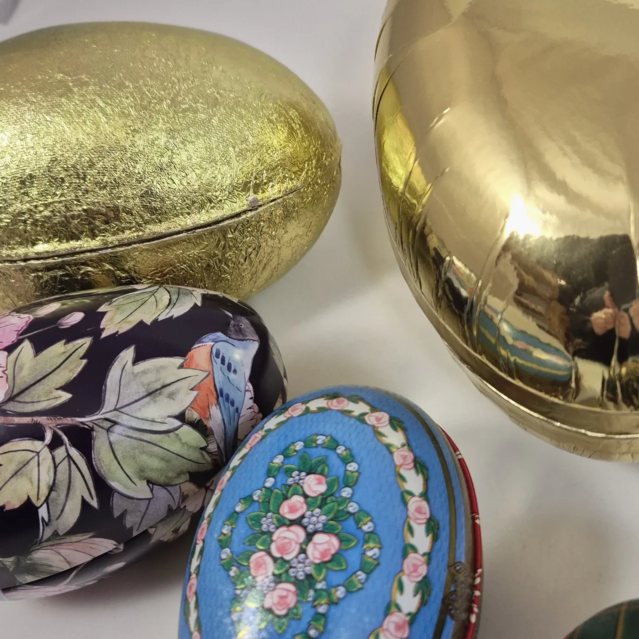 Tjusiga påskägg, 3st i metall, 3st i papp . Största L.17.5cm