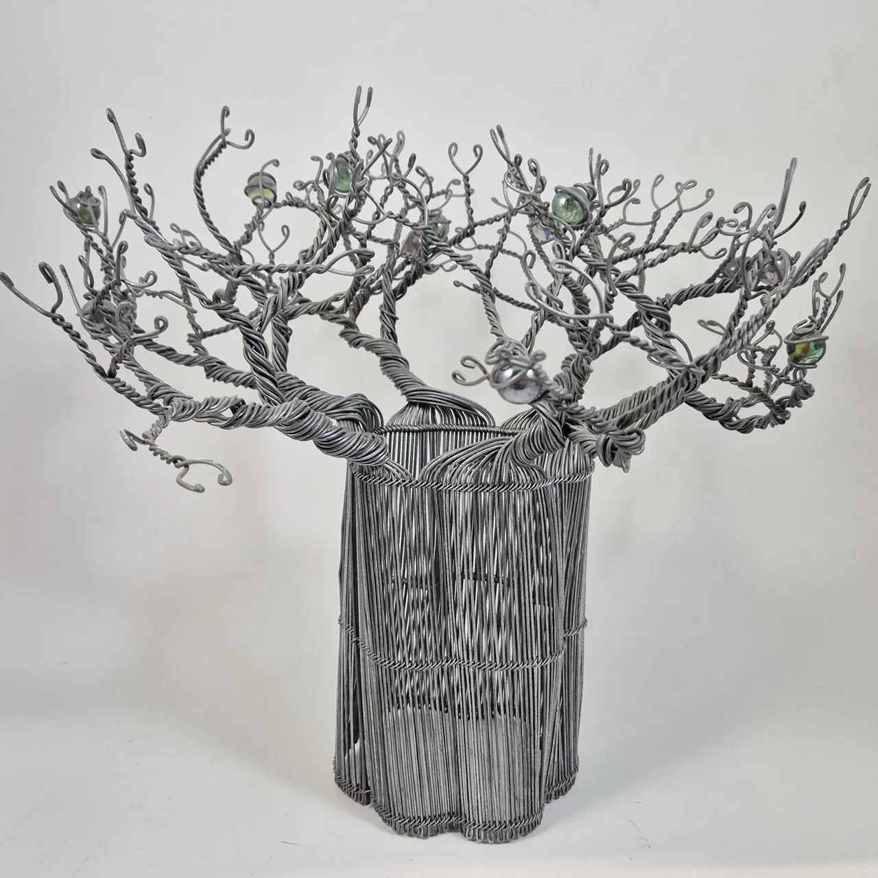 Träd i trådslöjd med glaskulor . Stor :) H. 35cm