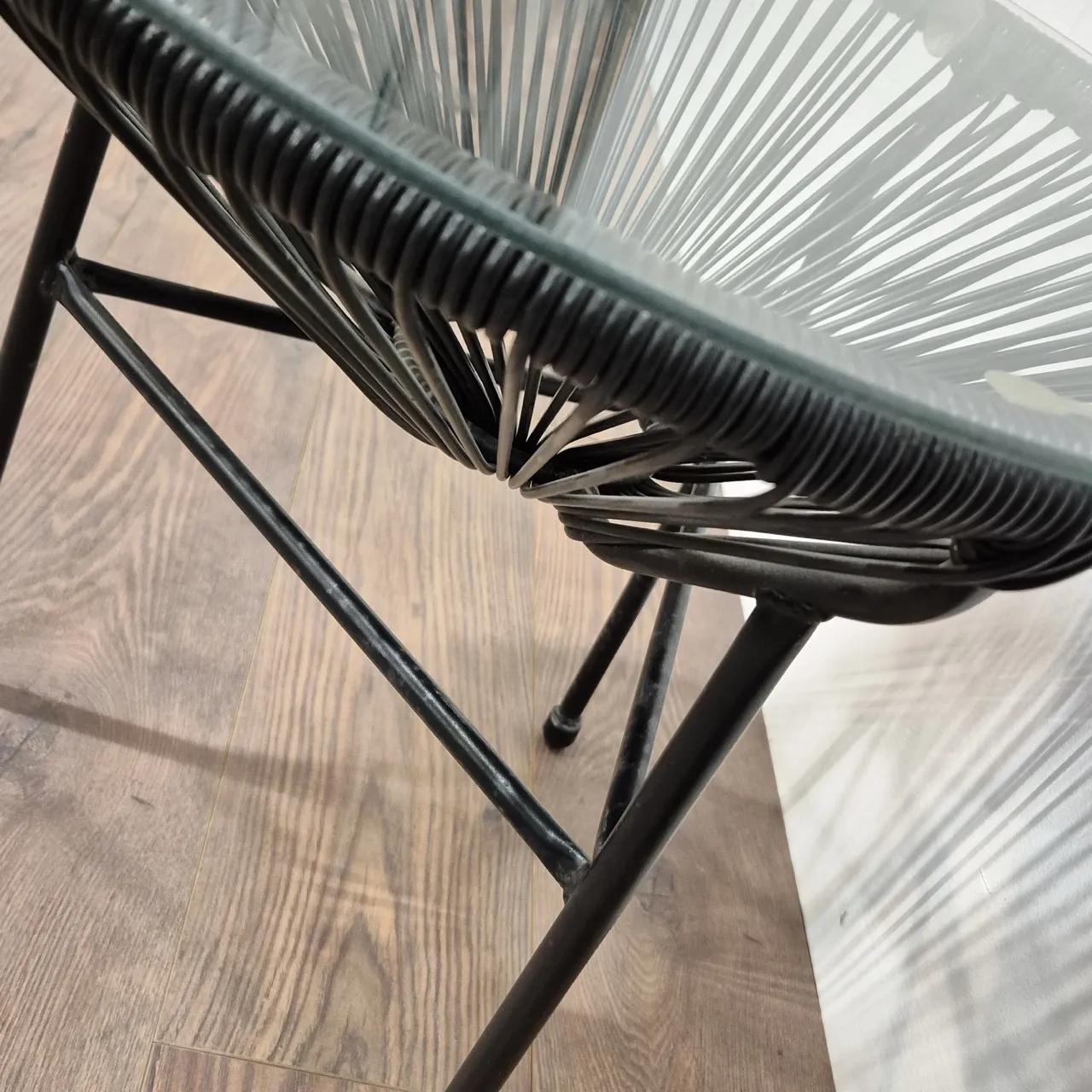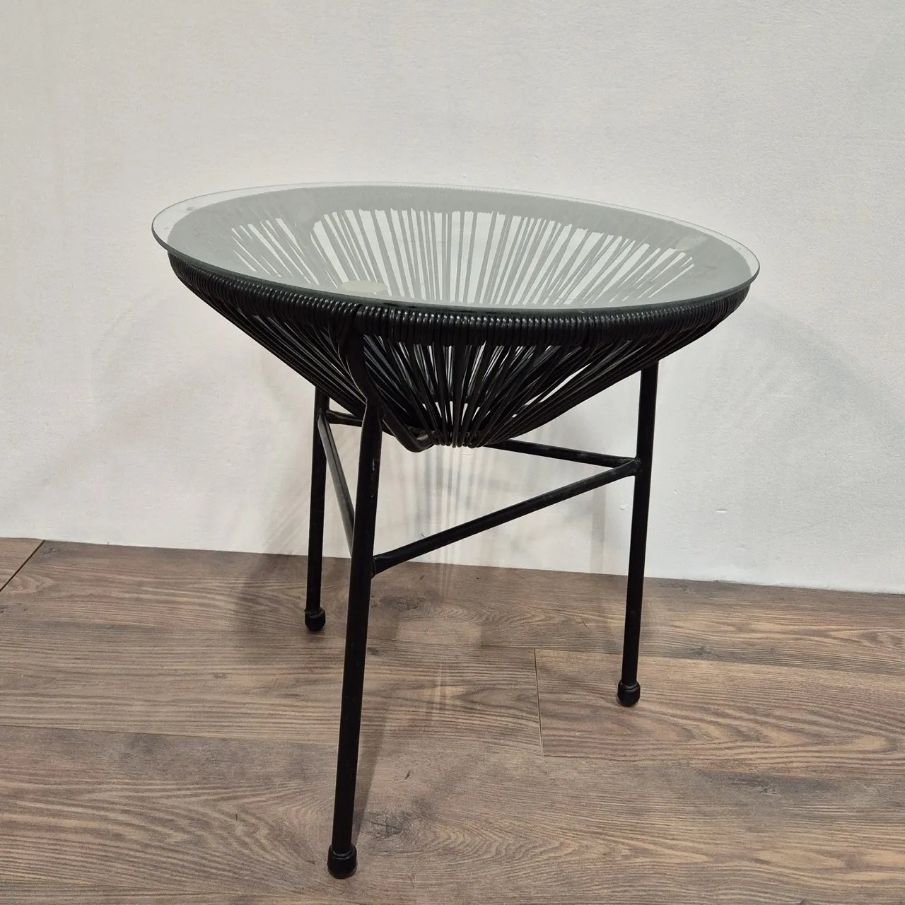 Nätt litet bord med glasskiva. H.51cm D.50cm