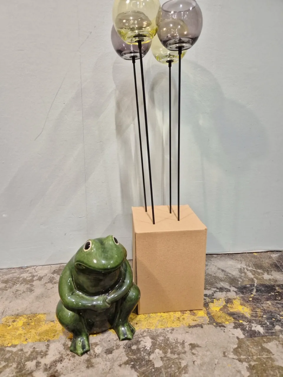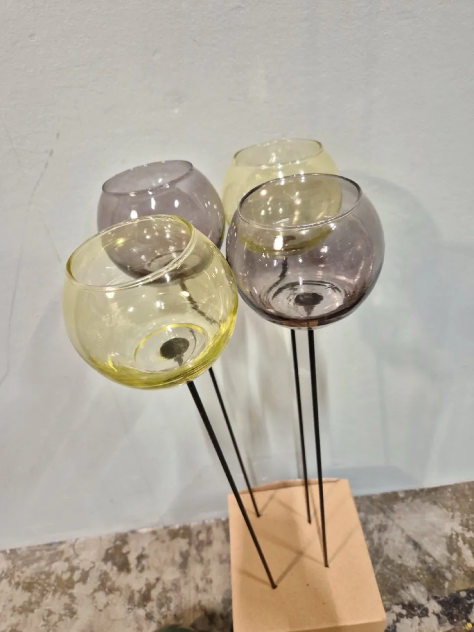 Ljuslyktor på pinne att ställa i trädgården. 4st, en har lite problem med gängan.