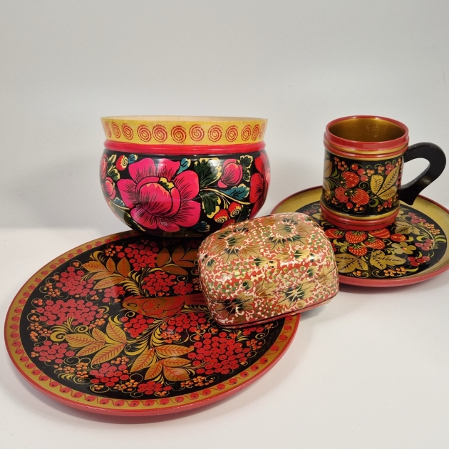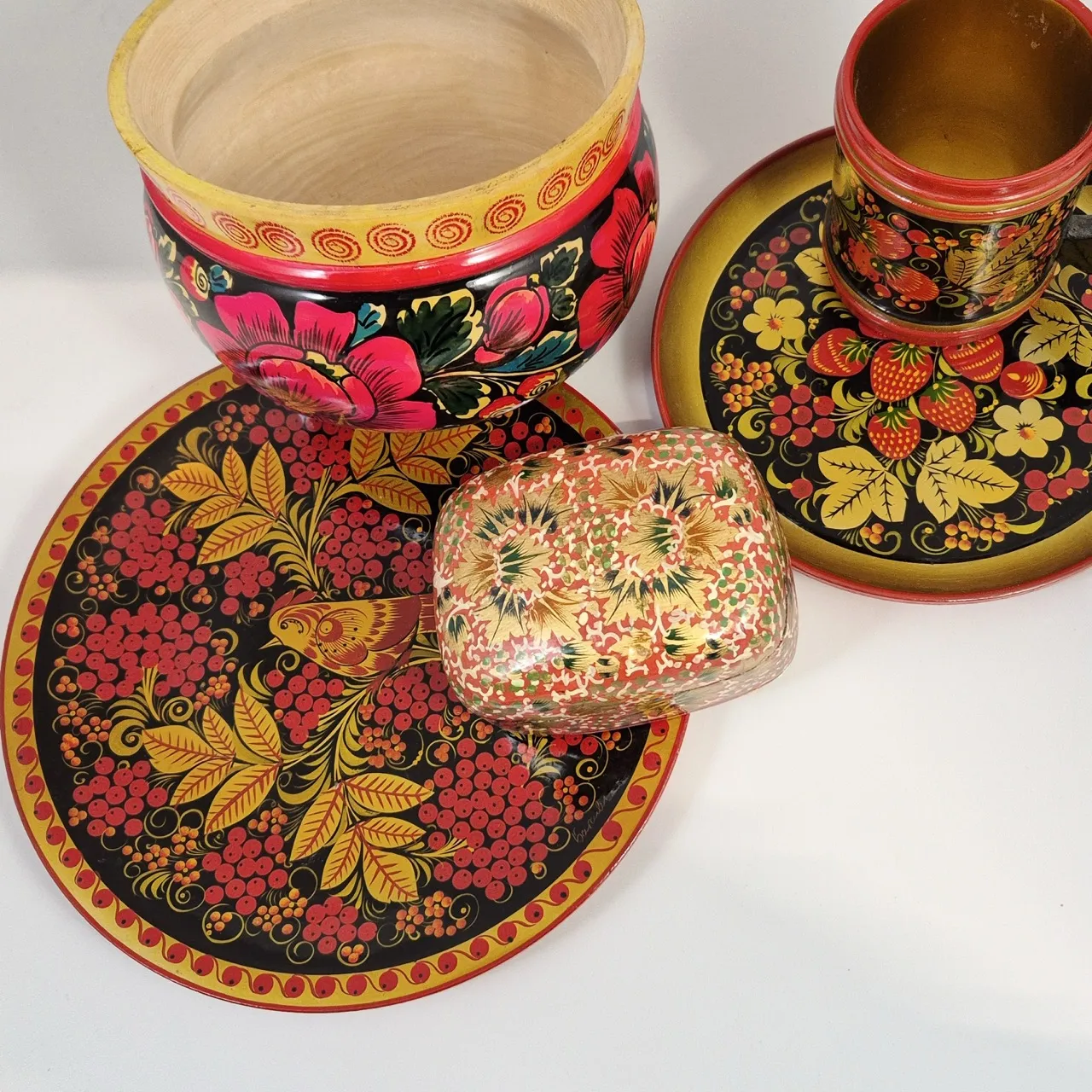 2st träbrickor, 1st kruka trä D.17cm  , 1st lockask, 1st mugg/stop