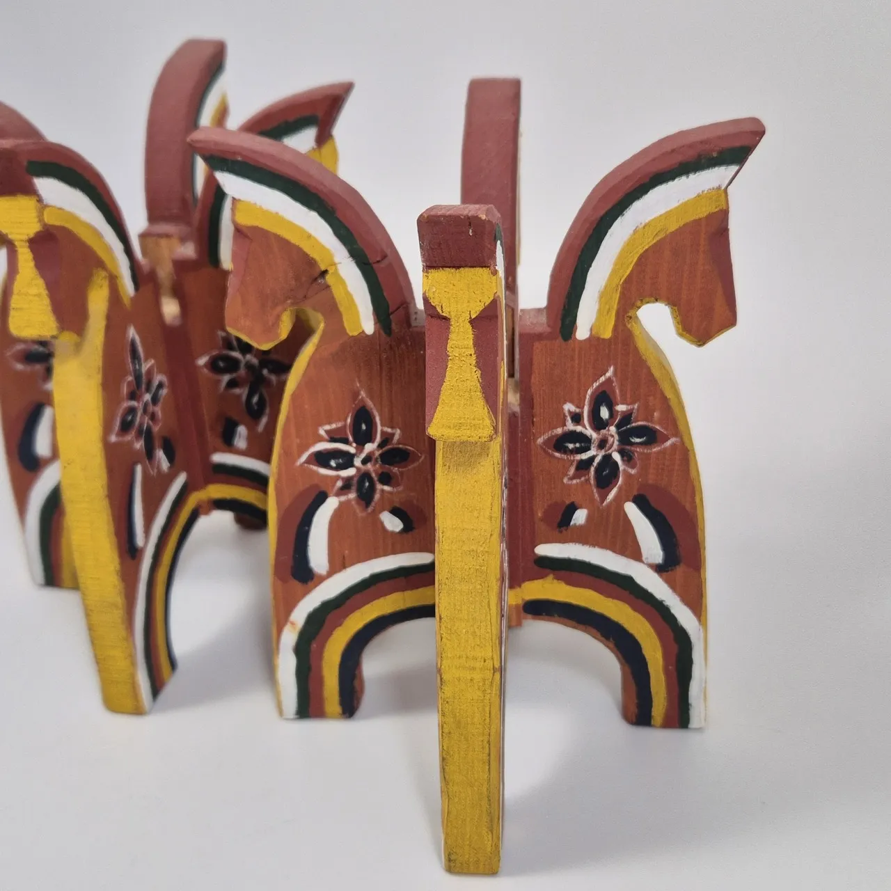 2st trähästgrejer, charmiga men vi vet inte vad de är menat till. H.18.5cm