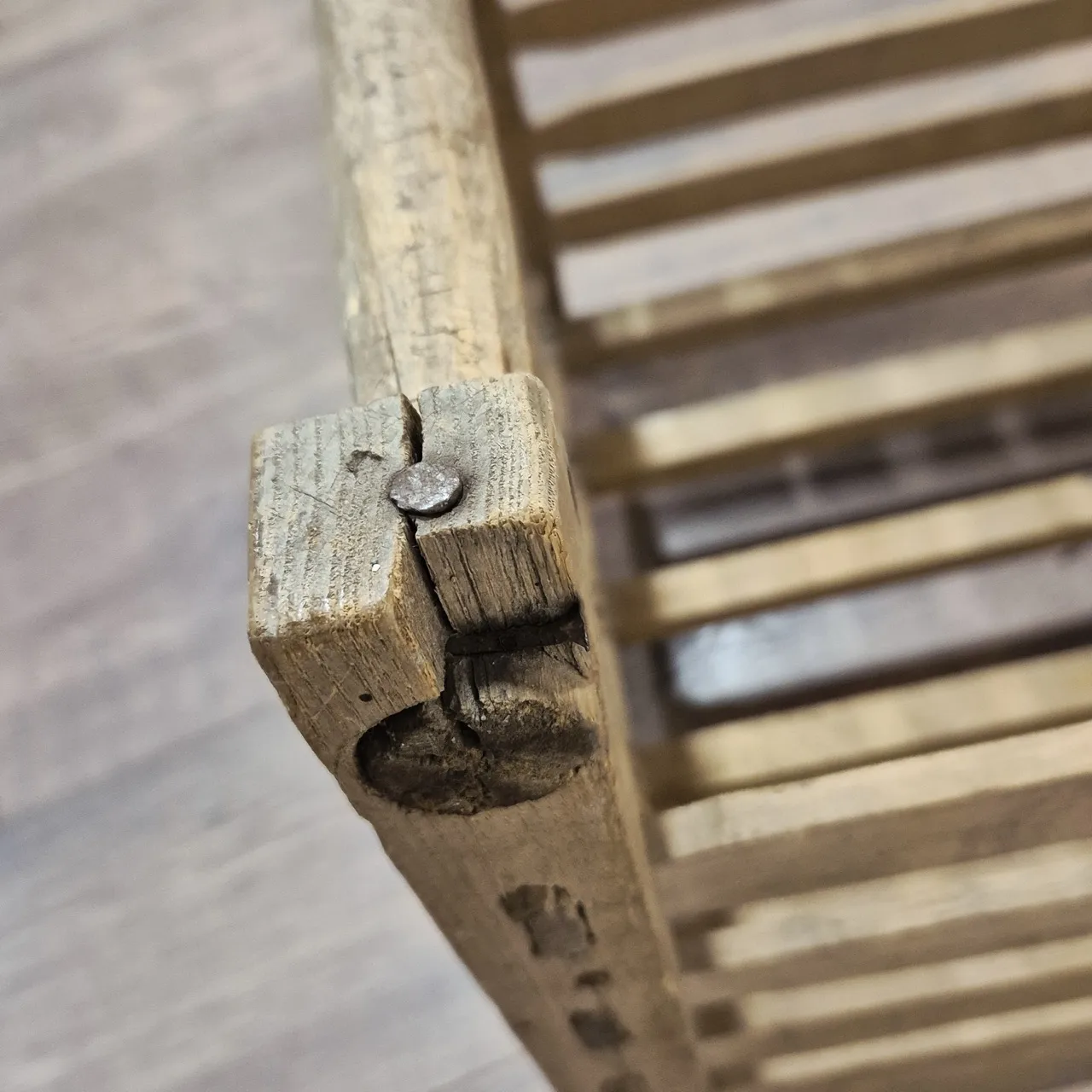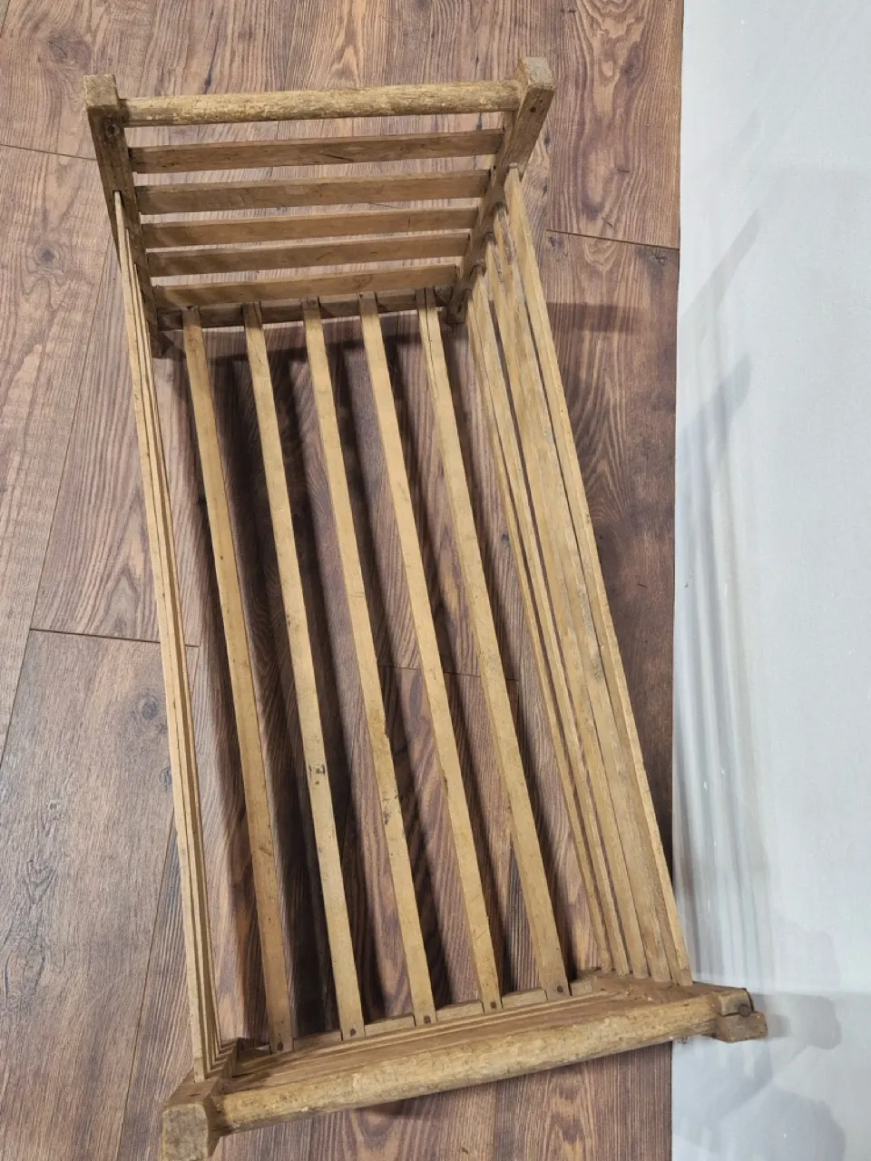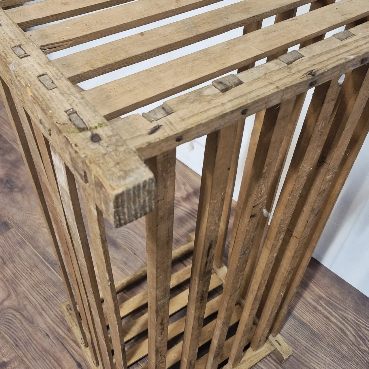 Inte helt stabil men hel och fin . Perfekt att förvara plädar, kuddar, överkast i.