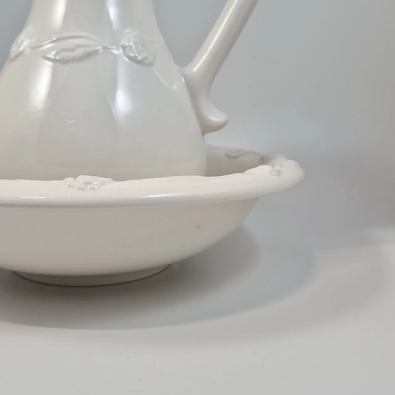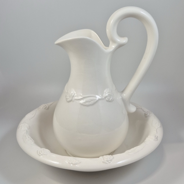 Vackert tvättfat med kanna. Höjd på kanna 33cm