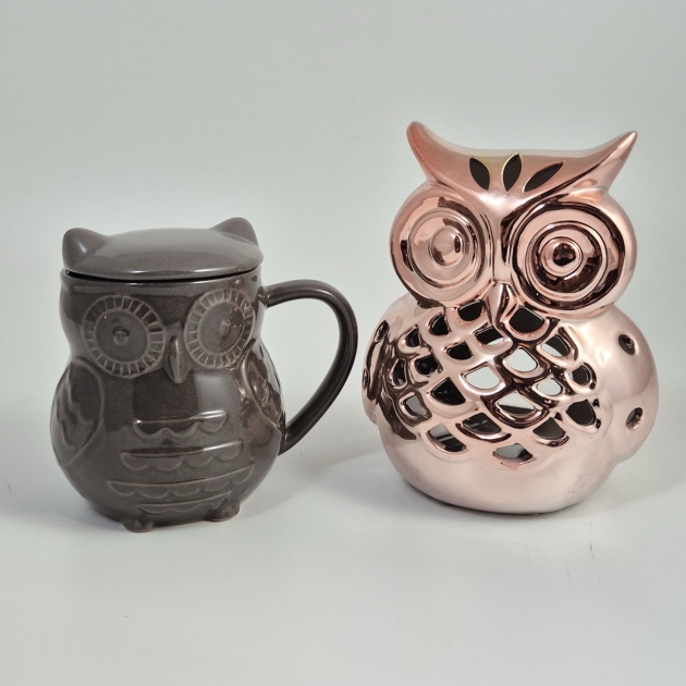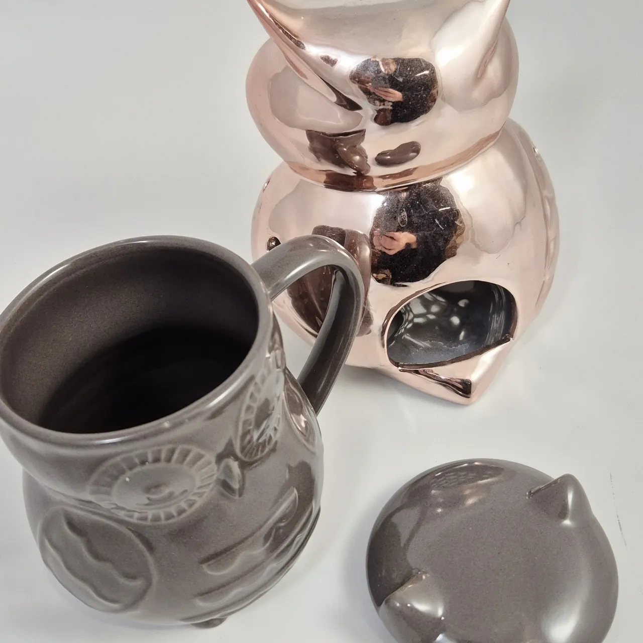 Ljuslykta uggla H.15.5cm , mugg med lock