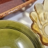Ugnsform Deco, 3st gröna skålar Höganäs D. 16cm , 1st glas skål