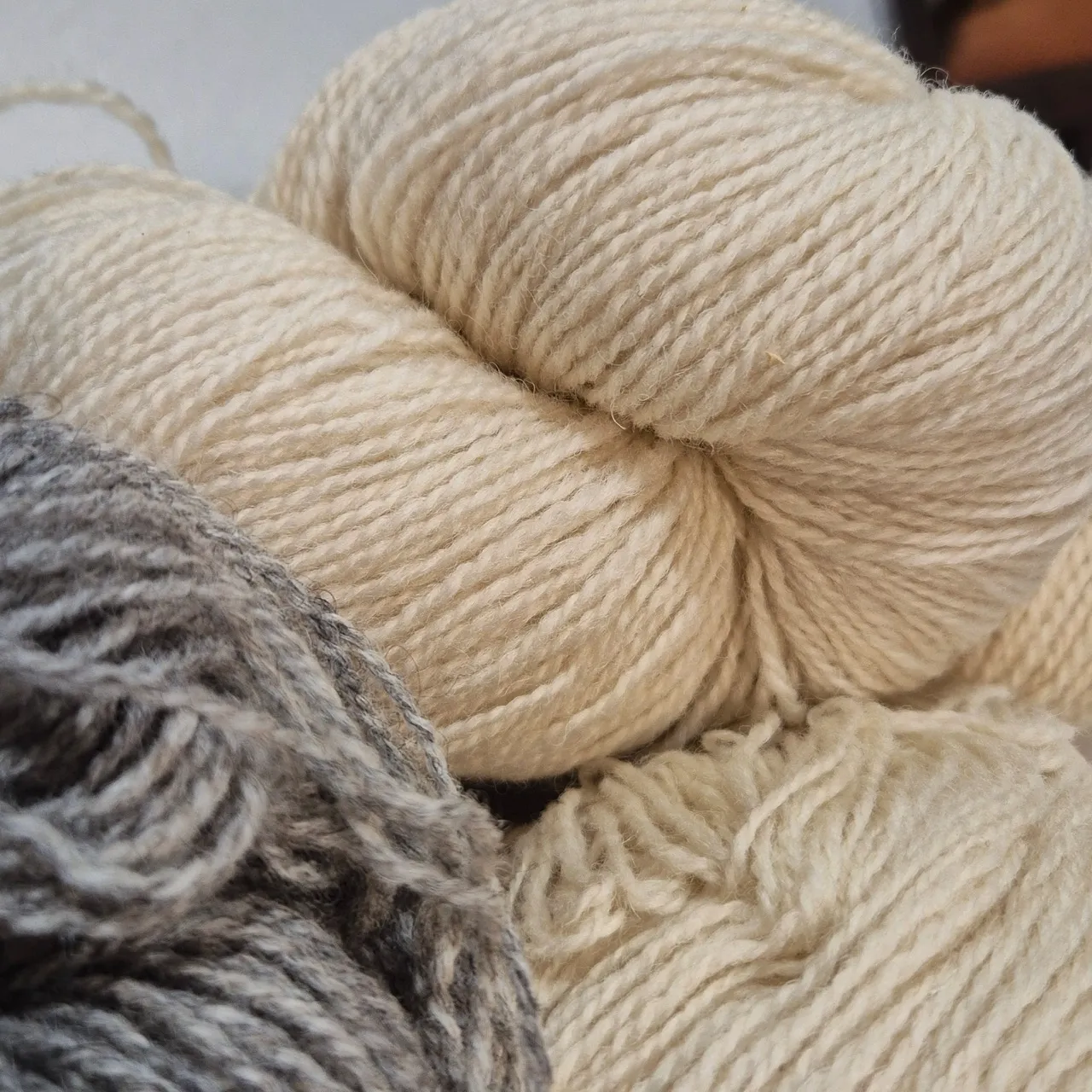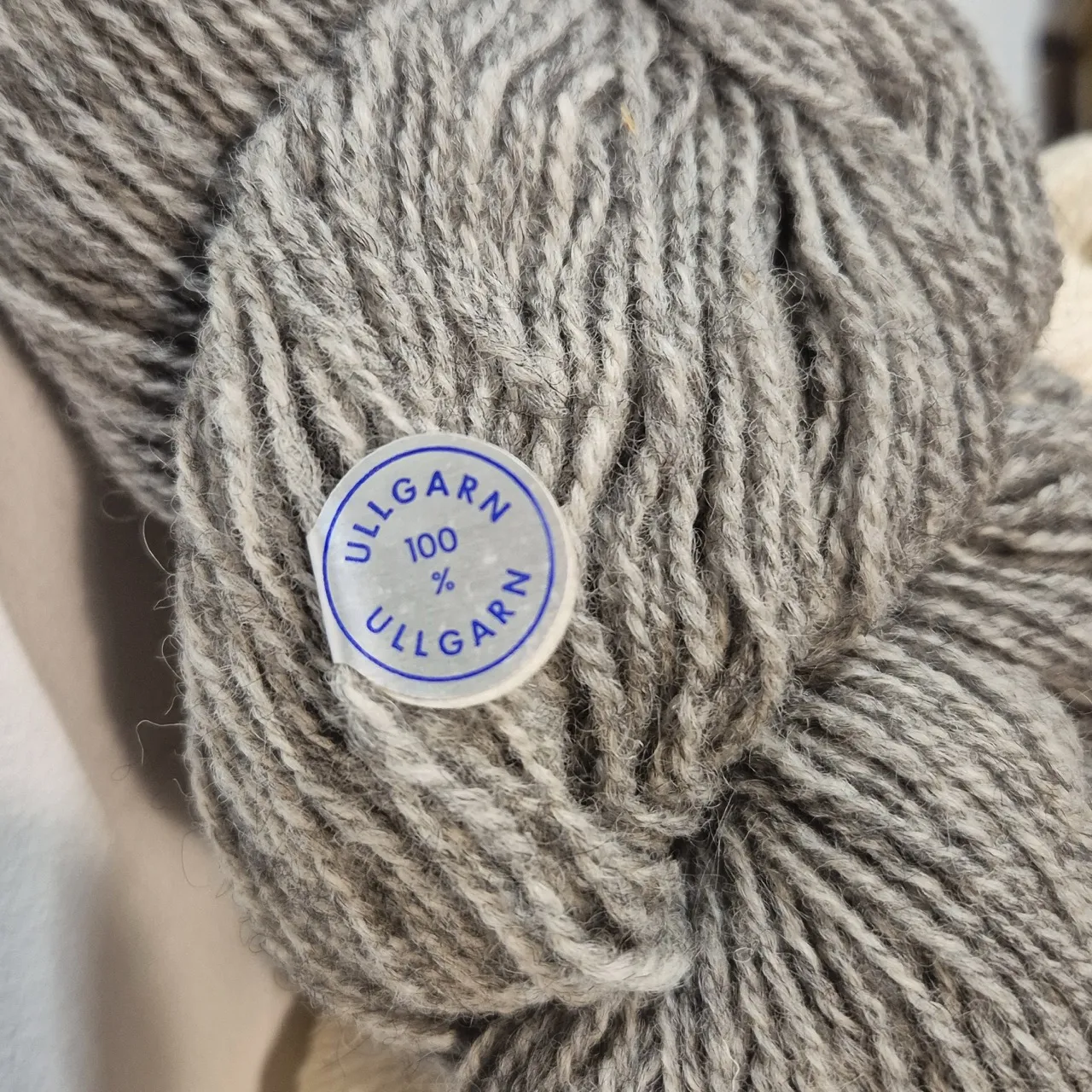 Ullgarn 3st vita, 1st mörkgrån härva. 100%ull