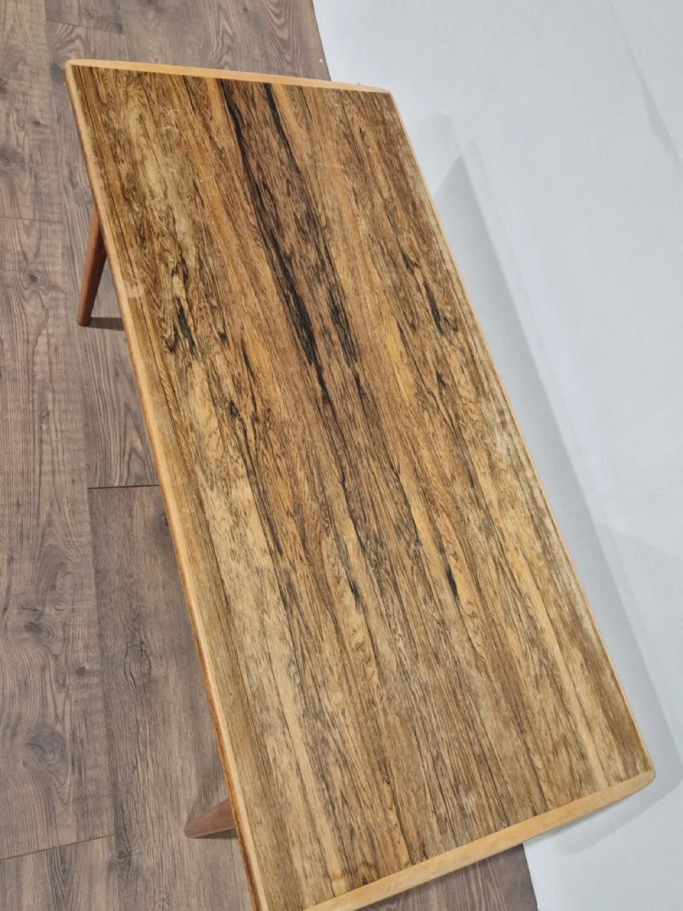 Sliten skiva, bubblor i faneren. Repor på benen.