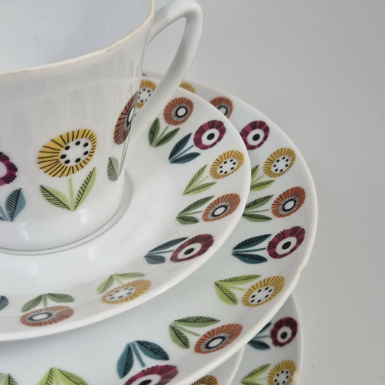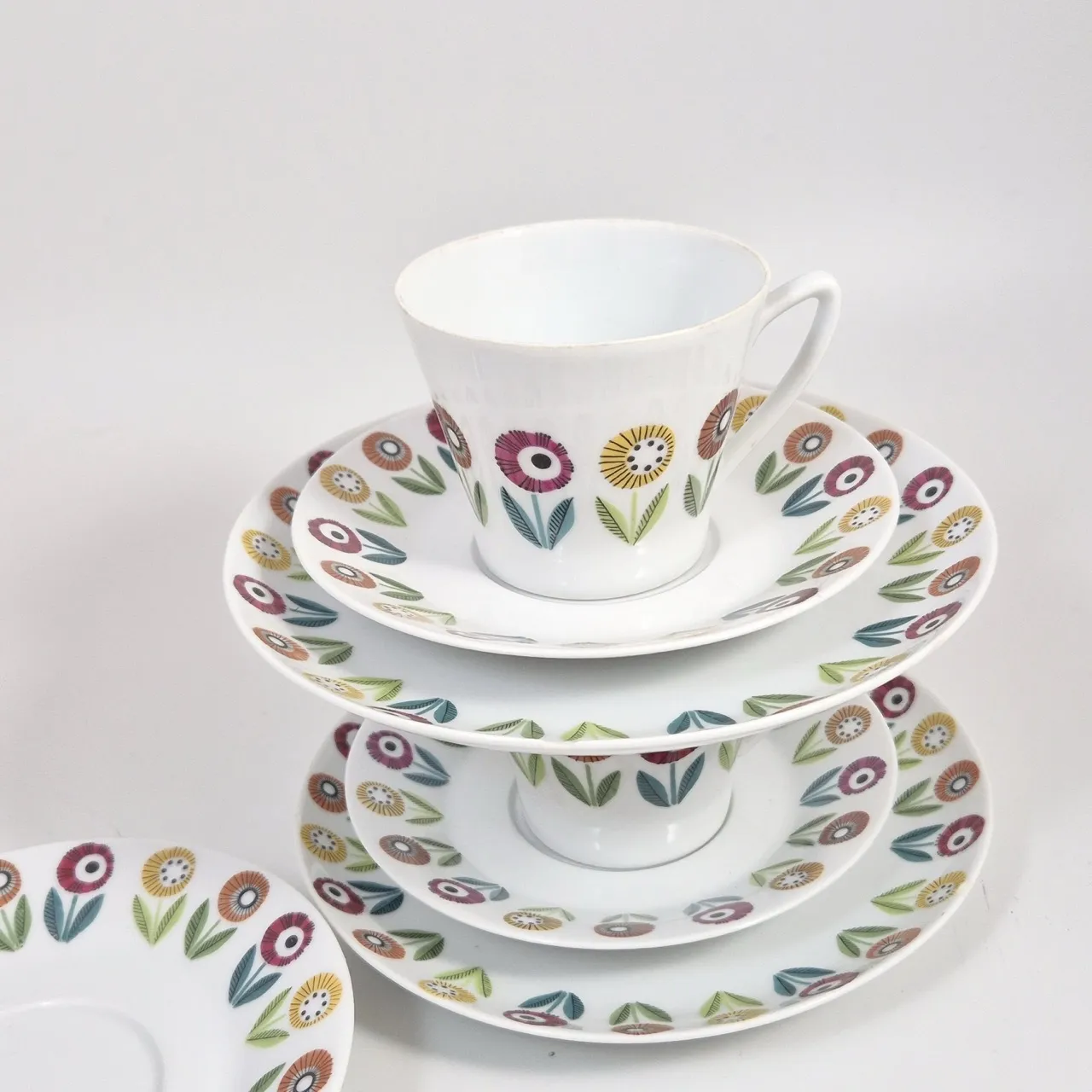 2st stora kaffekoppar H. 7.1cm med 4st fat