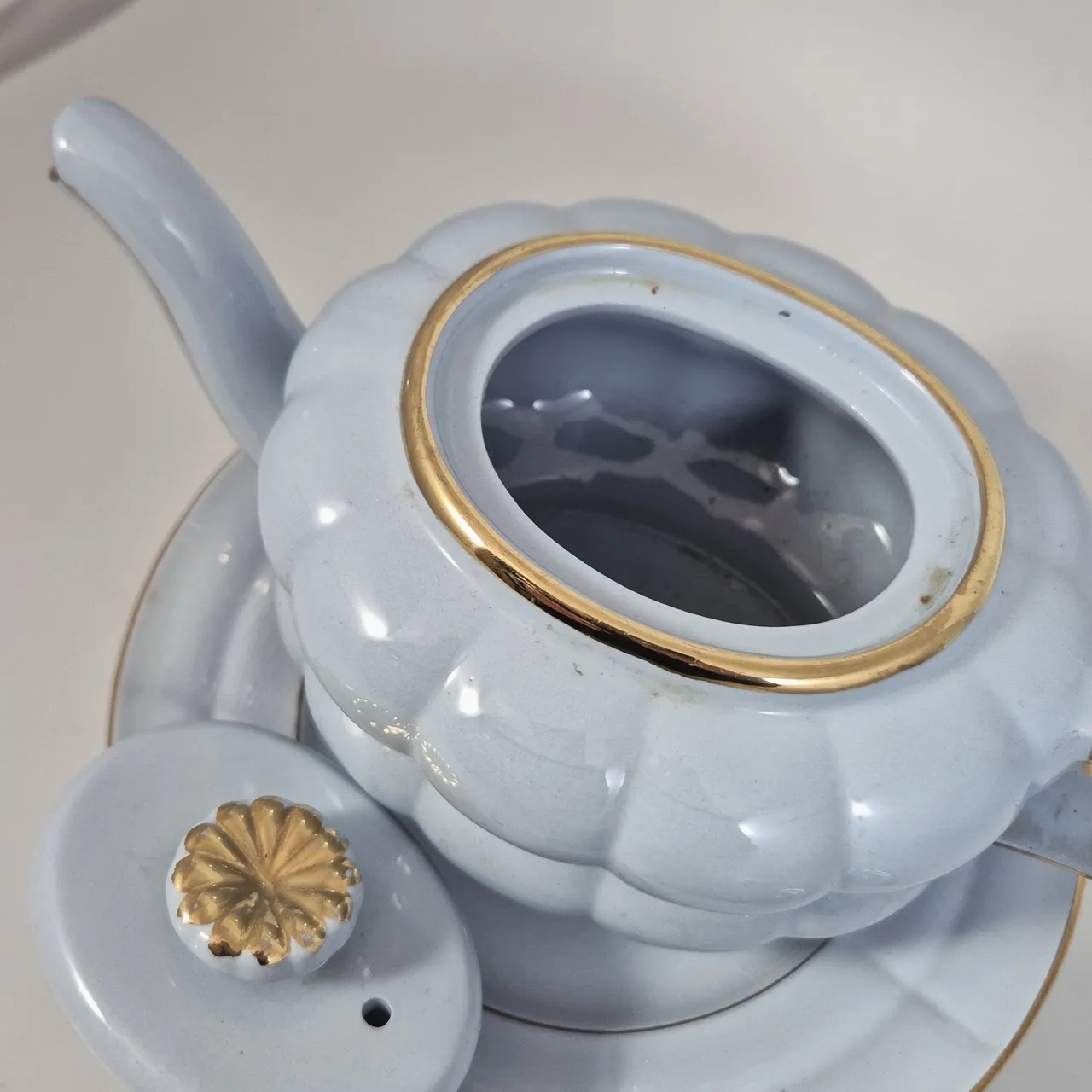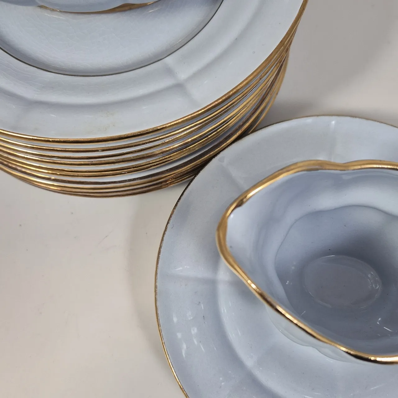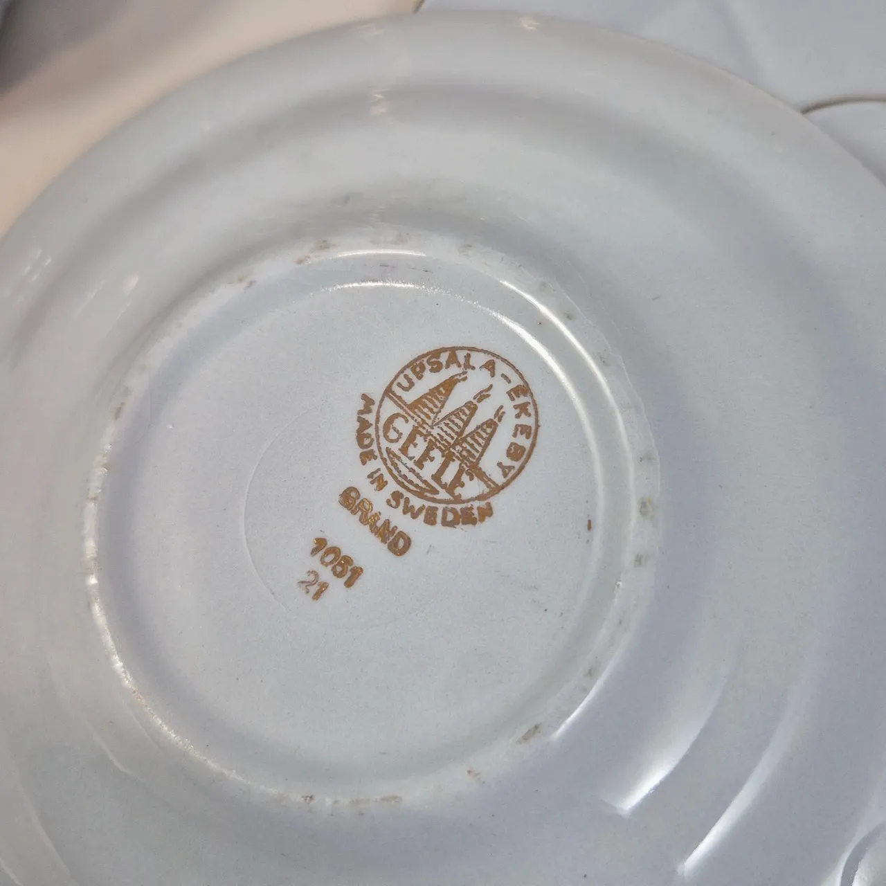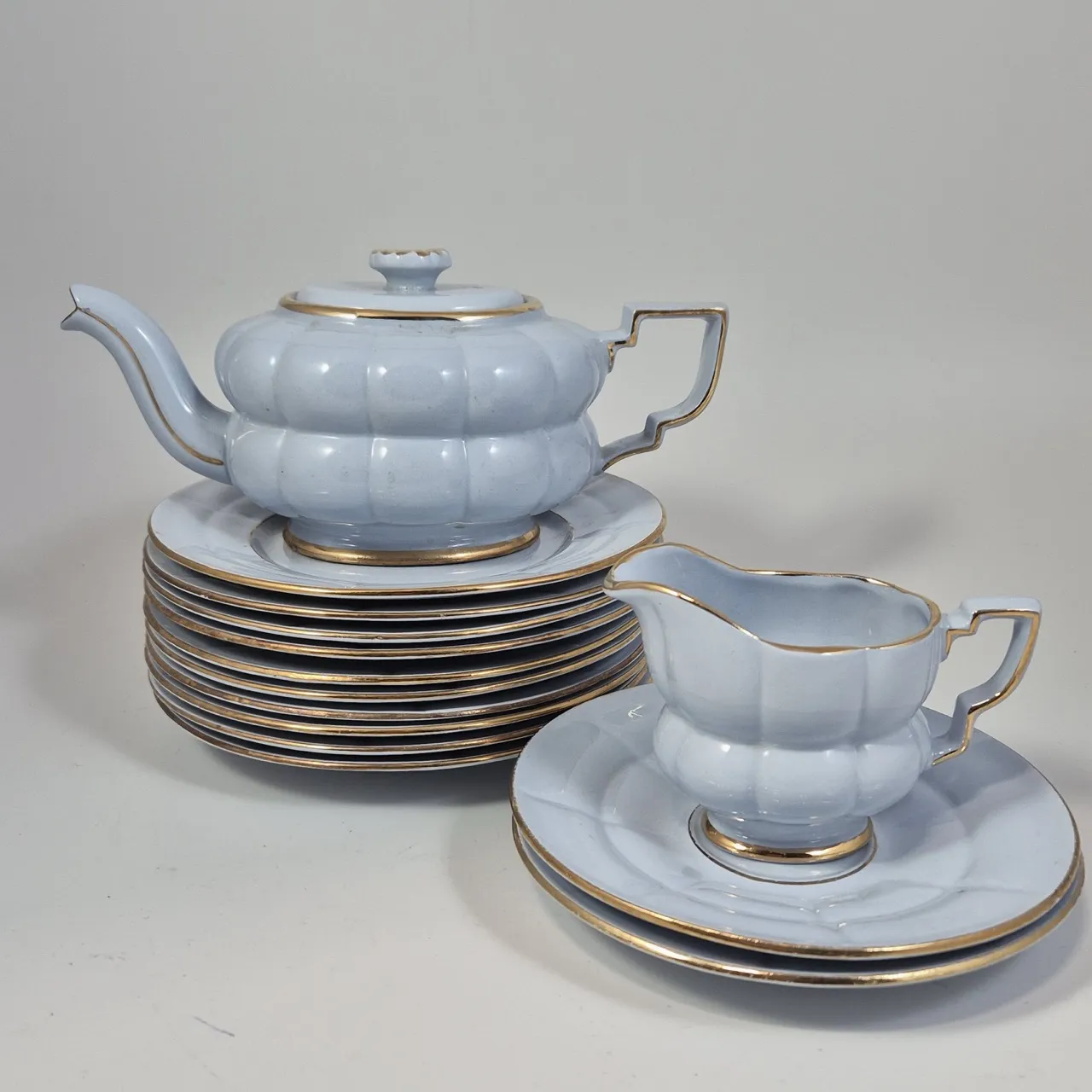 Upsala Ekeby Grand. Tekanna, gräddkanna, 2st fat, 10st assietter
