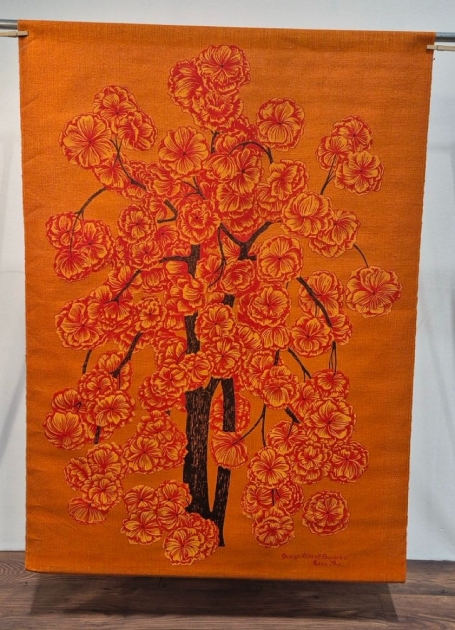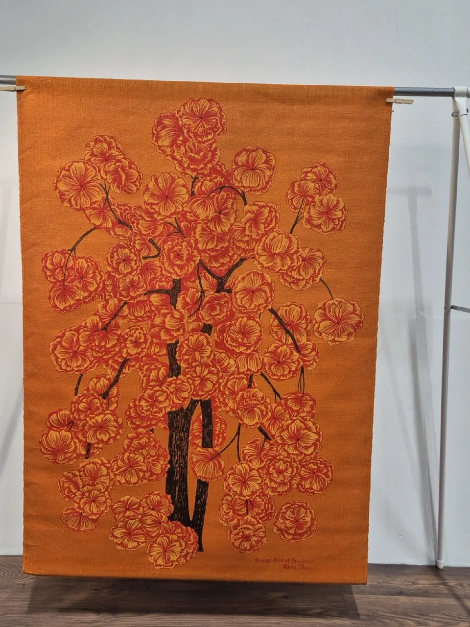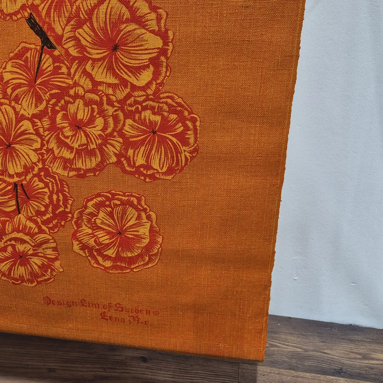 Väggbonad i knalliga orangea, glada färger. 145x100cm . Lini of sweden