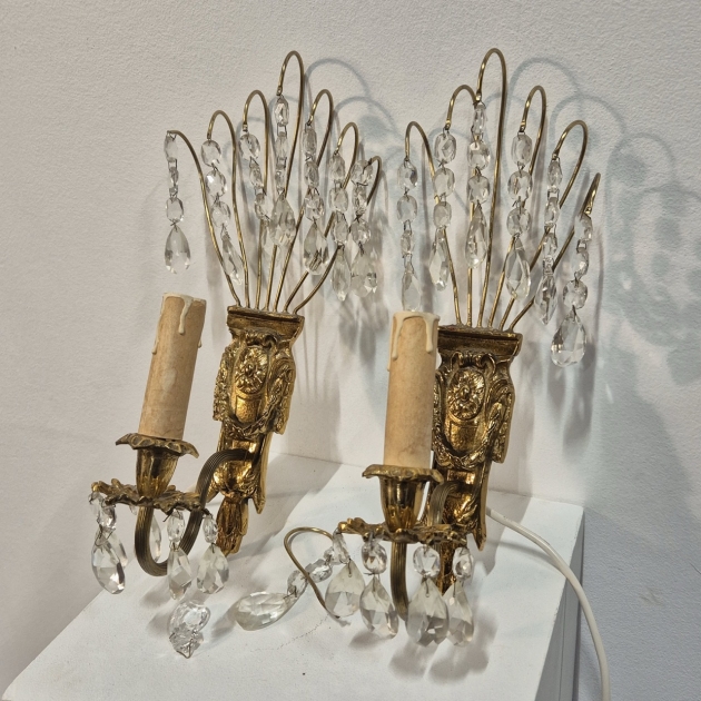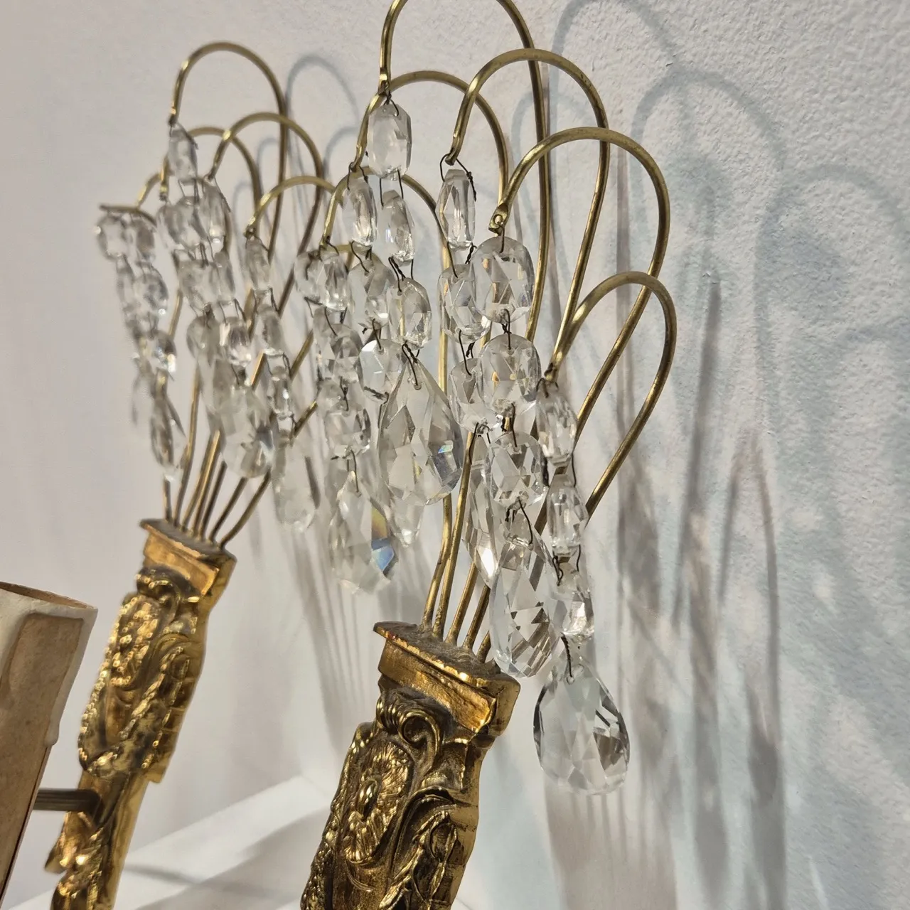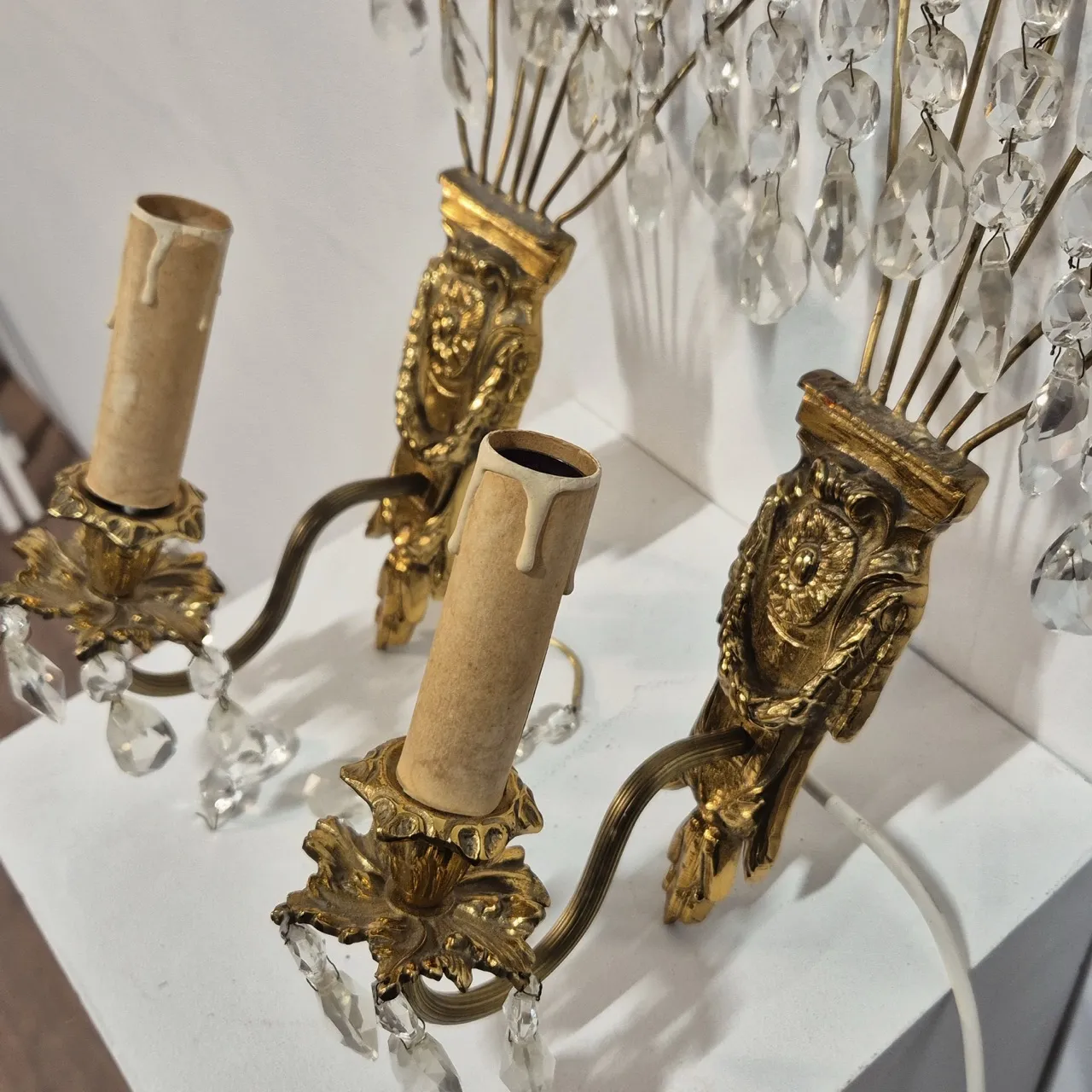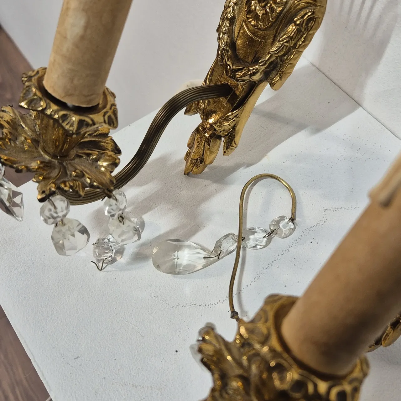 Glittriga vägglampor 2st  ej testade. en liten arm som håller prisman har lossnat. H.34cm