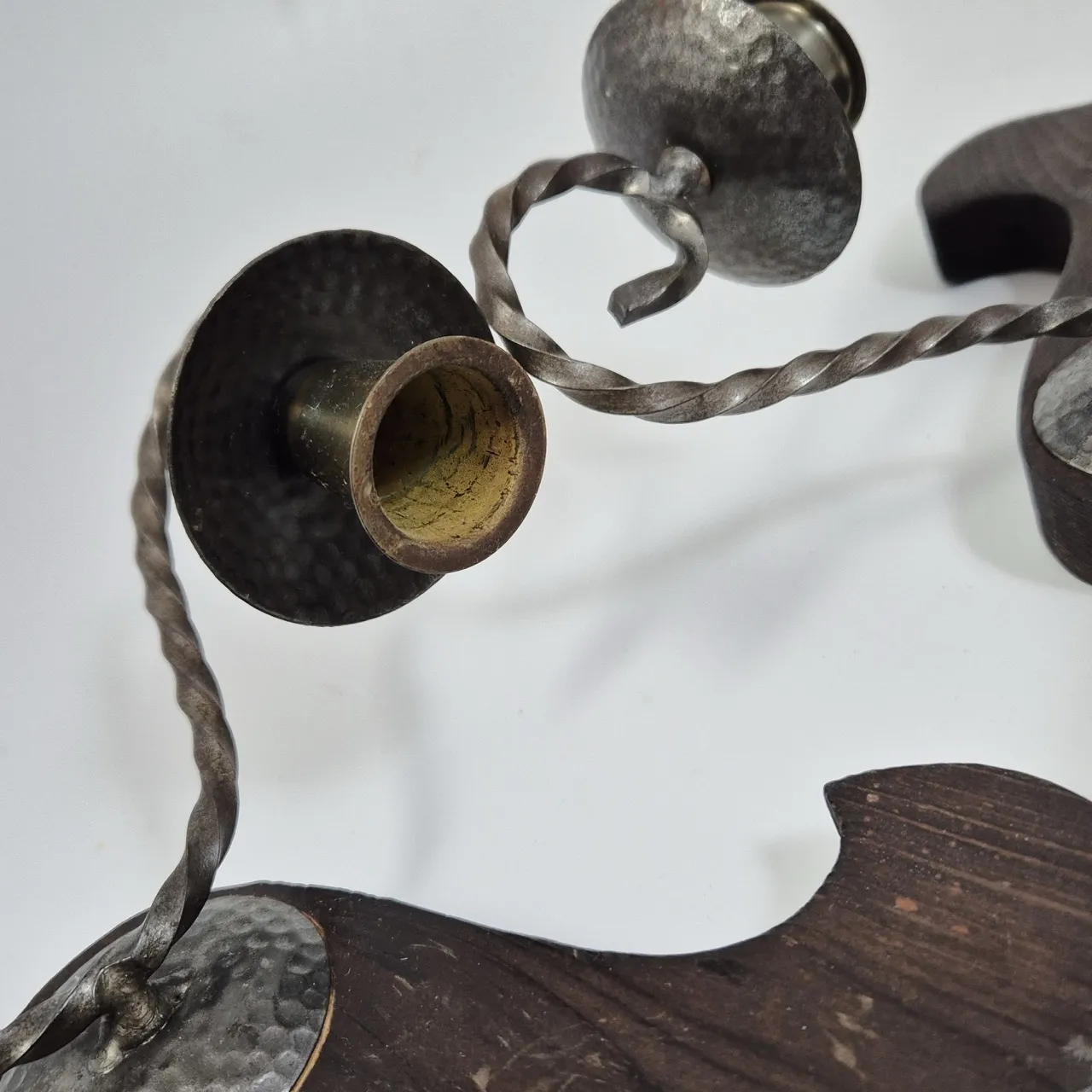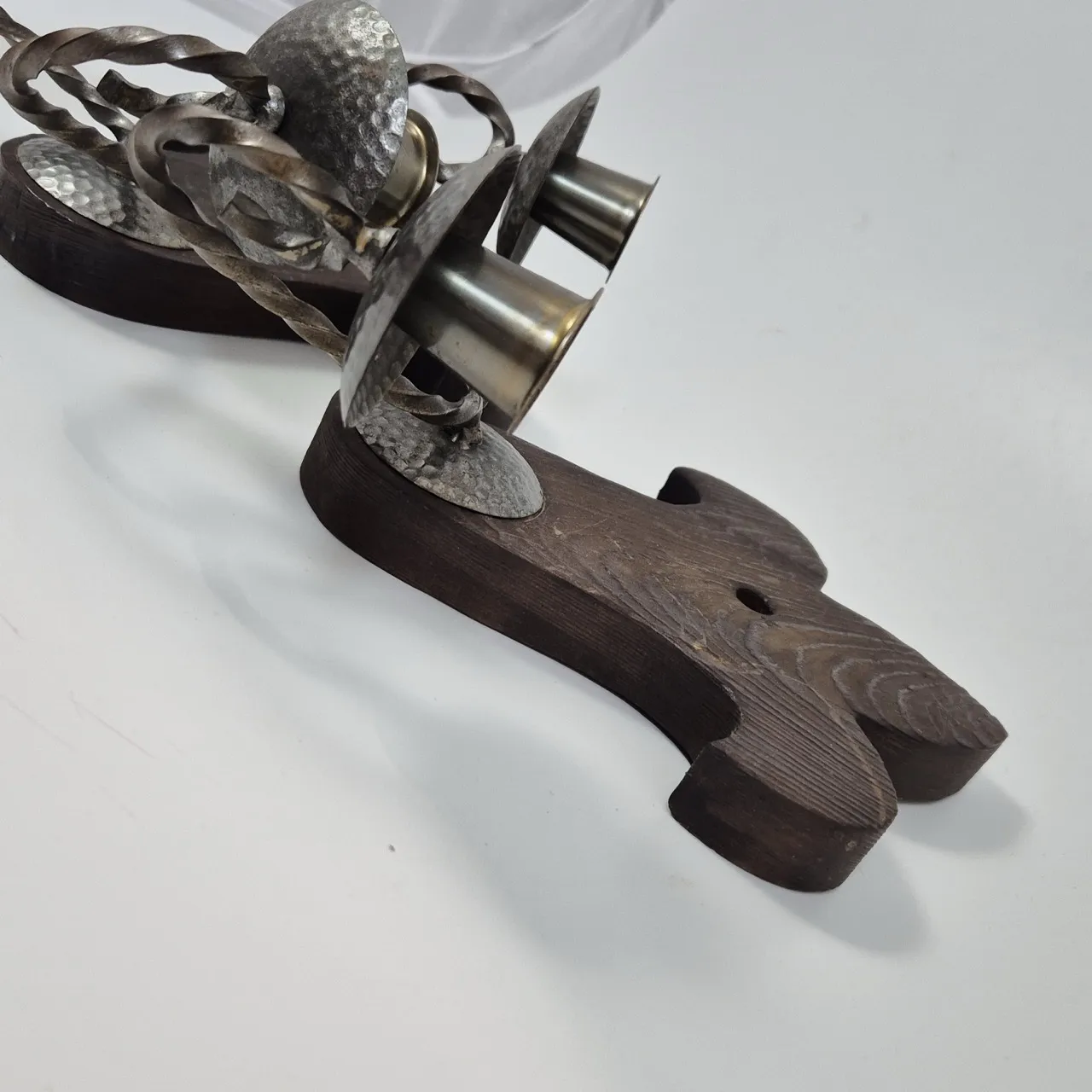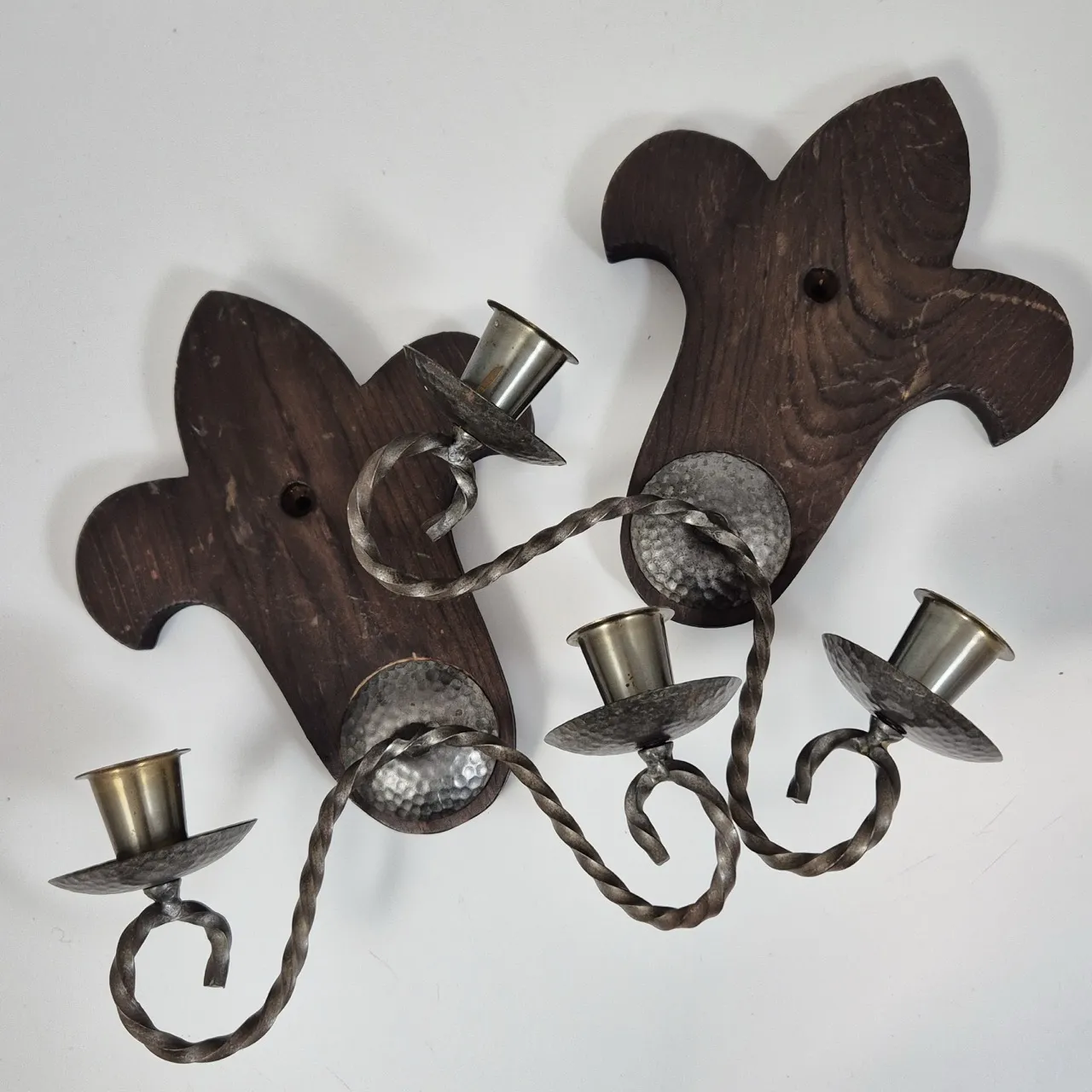 2sst väggljusstakar i trä och smide. H. ca 25cm