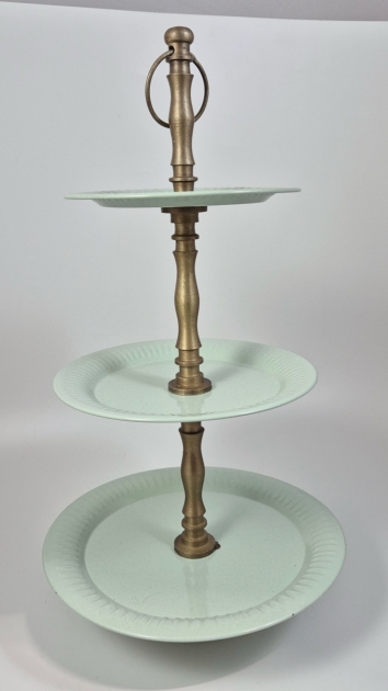 Högt våningsfat i metall, skavmärken finns. H.ca 46cm