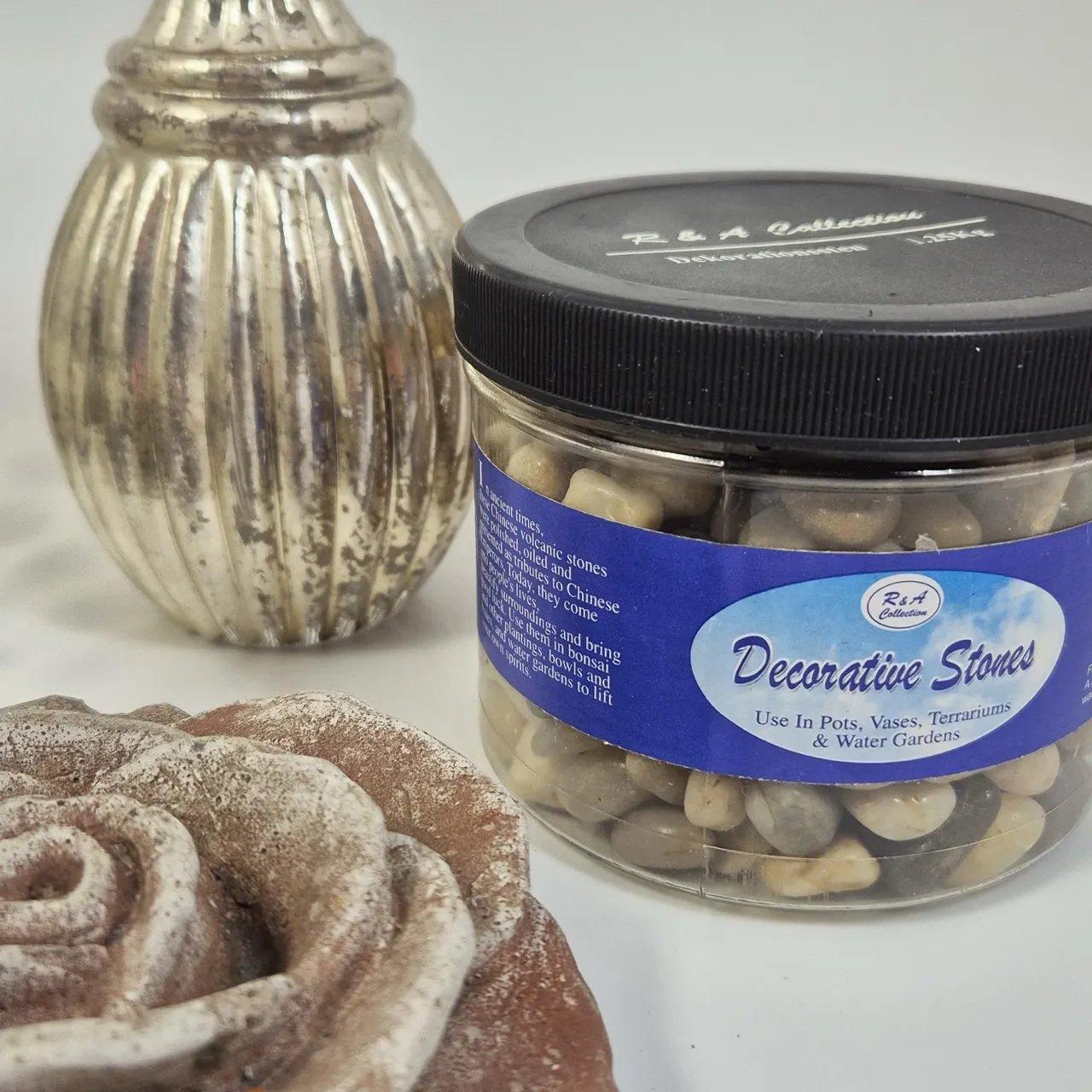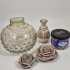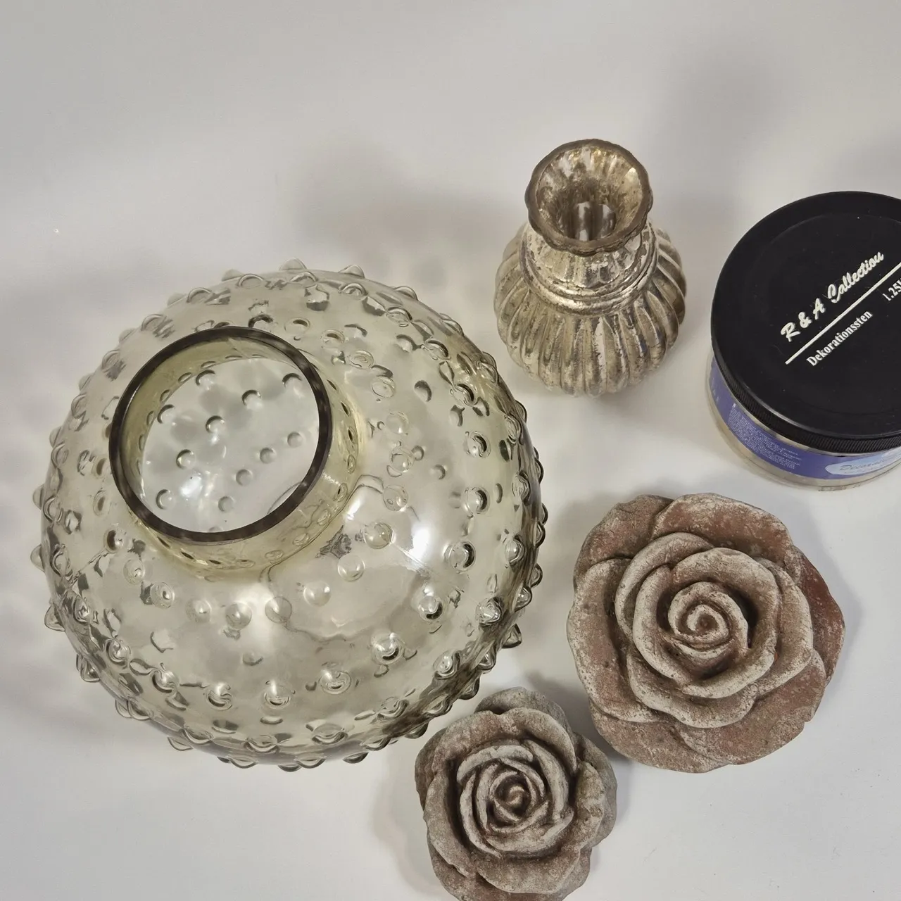 2st betongrosor, 2st olika vaser Högsta H.19cm , 1st burk dekorsten
