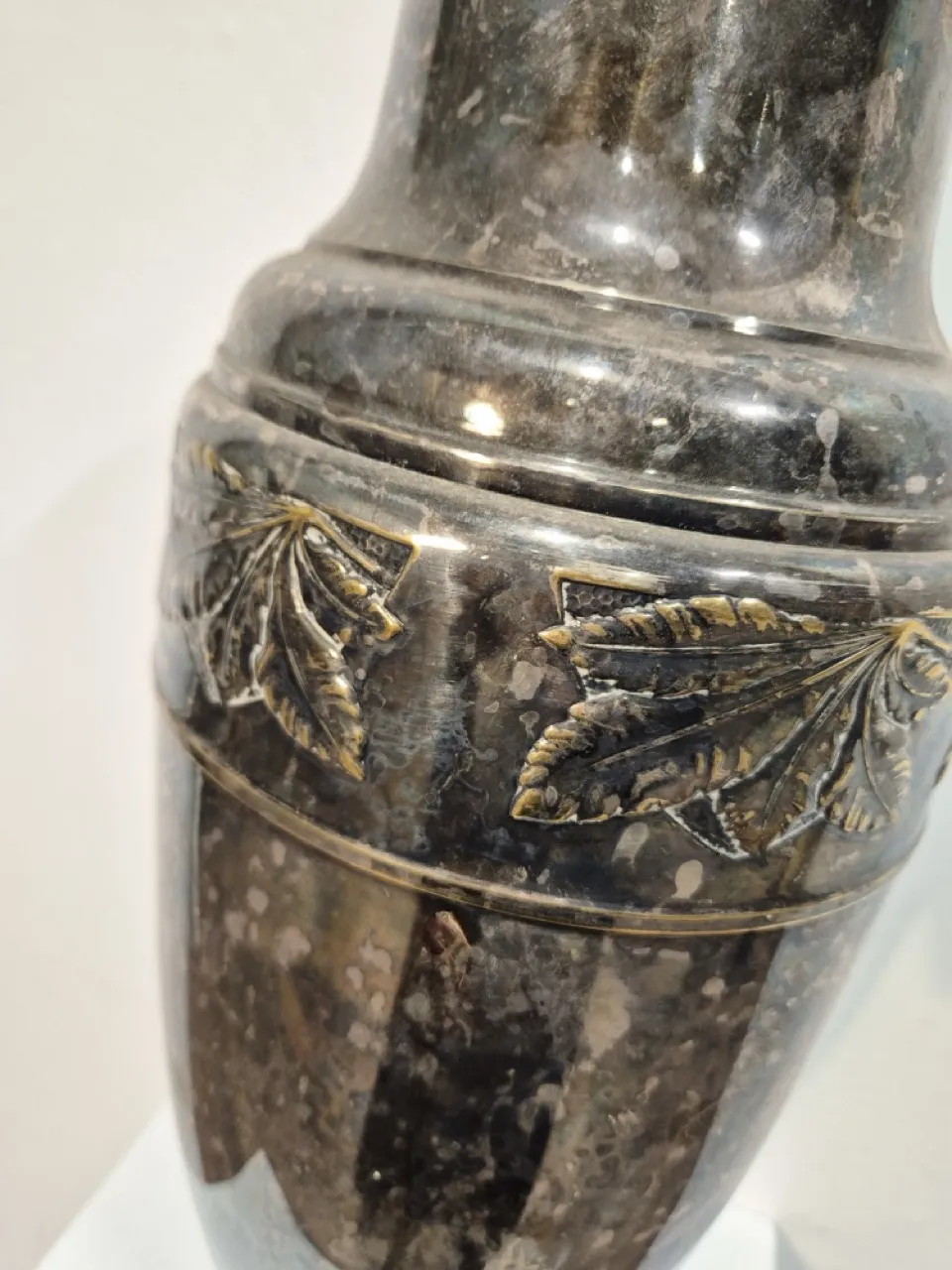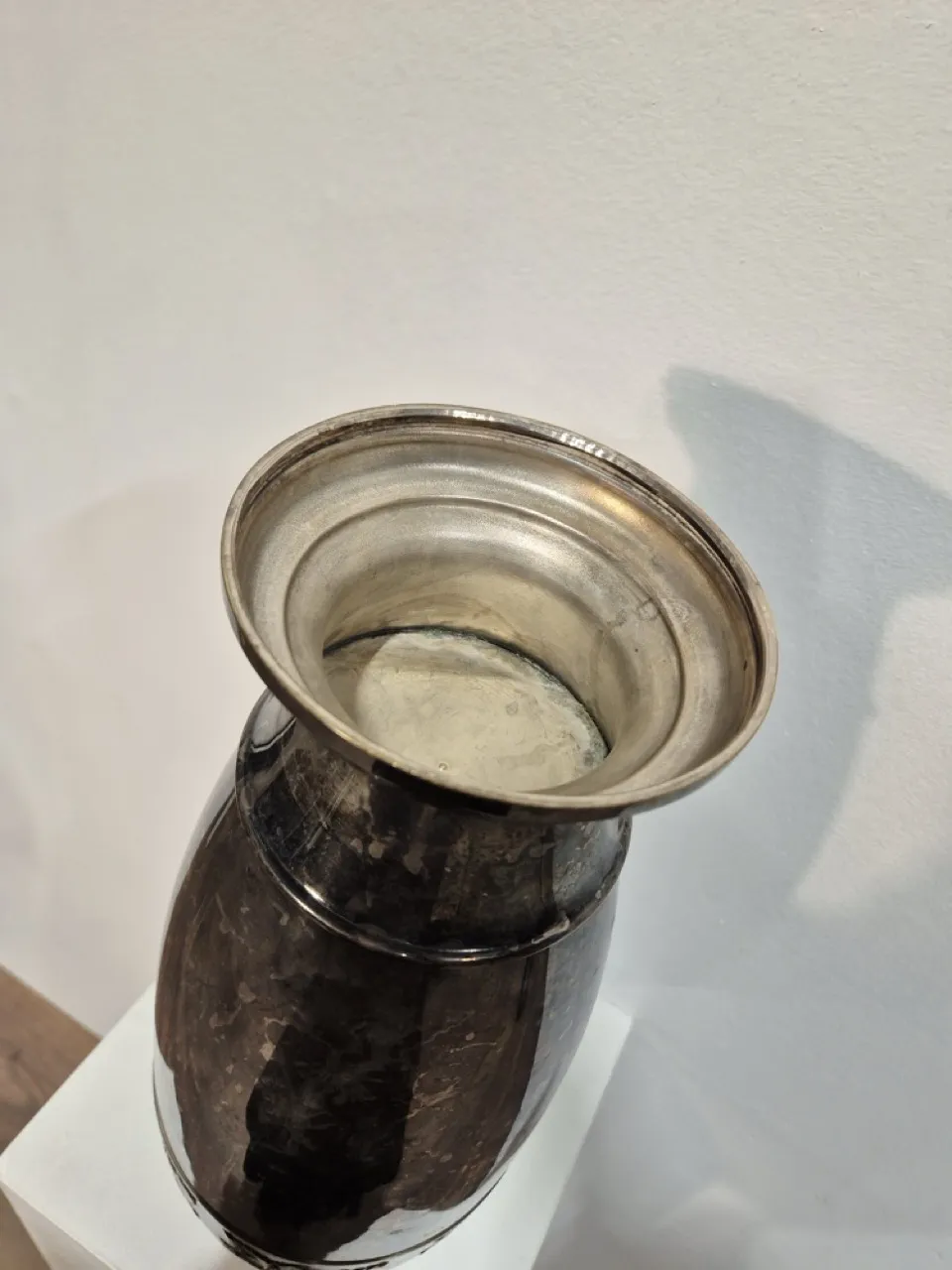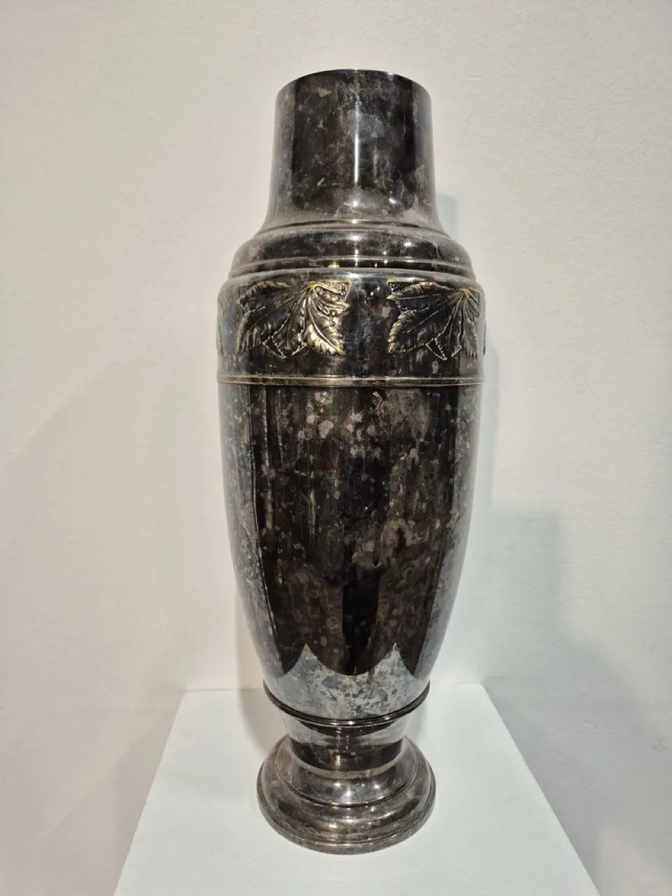 Hög vas i metall . H.46cm