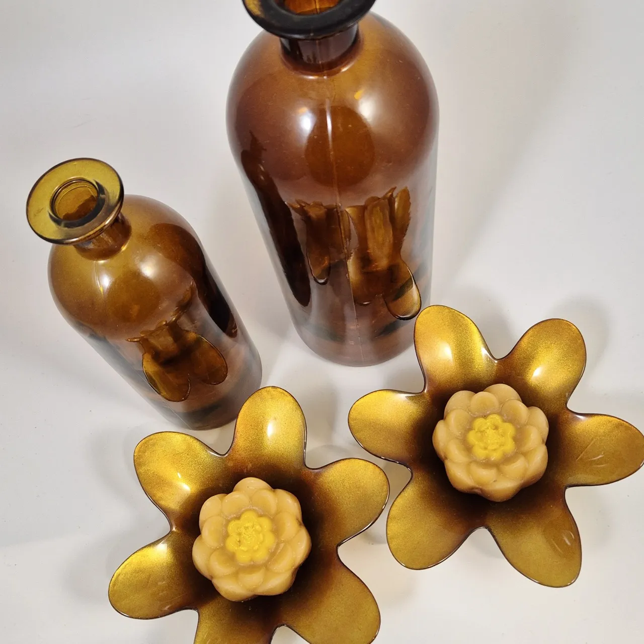 2st flaskvaser, 2st ljushållare med blommiga ljus