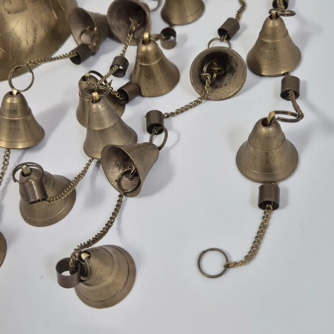 Vindspel i mässing, en klocka saknas. ca 55cm