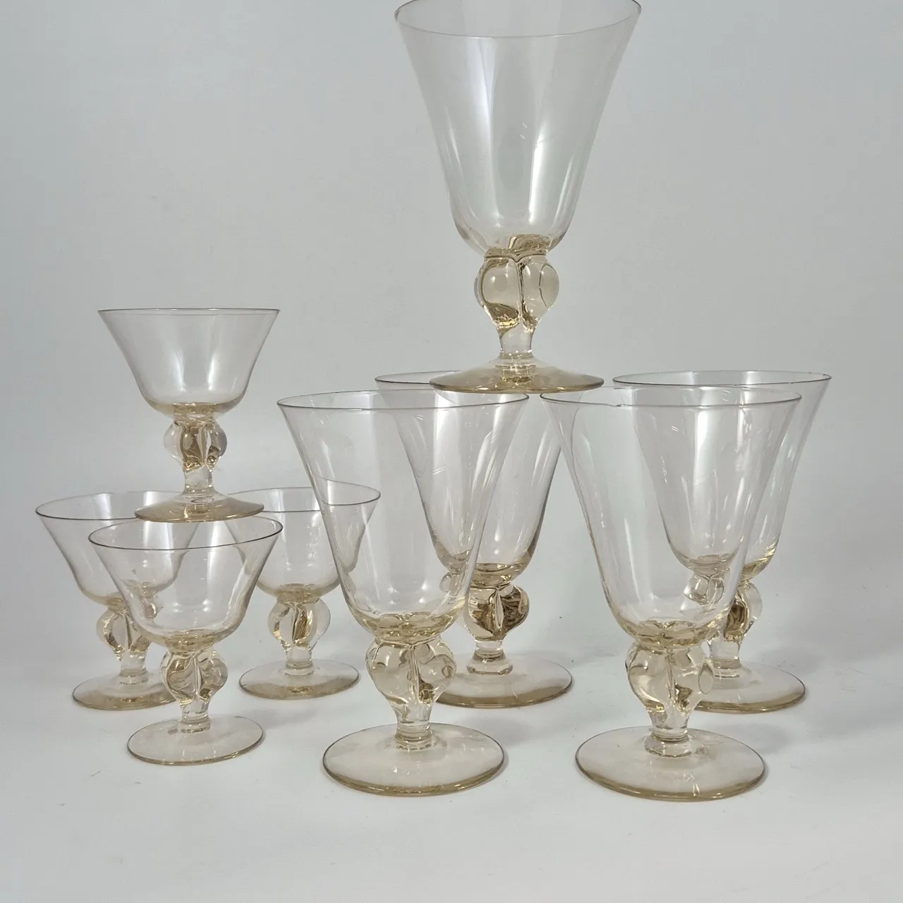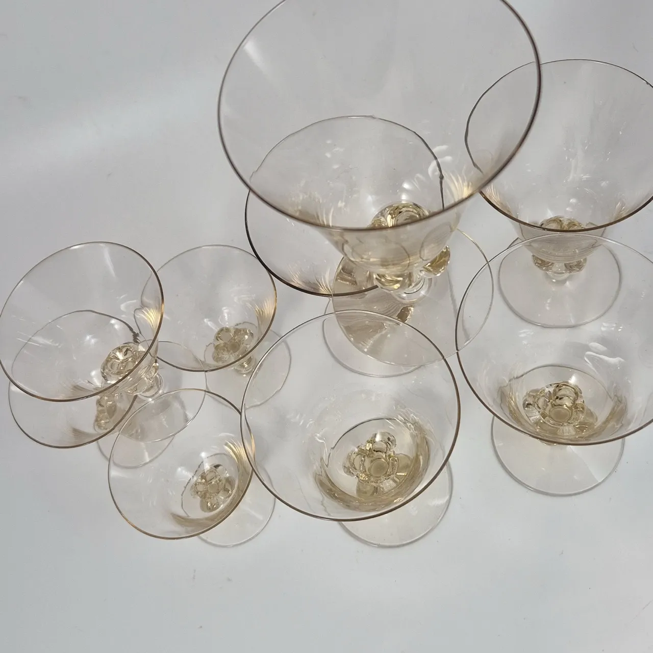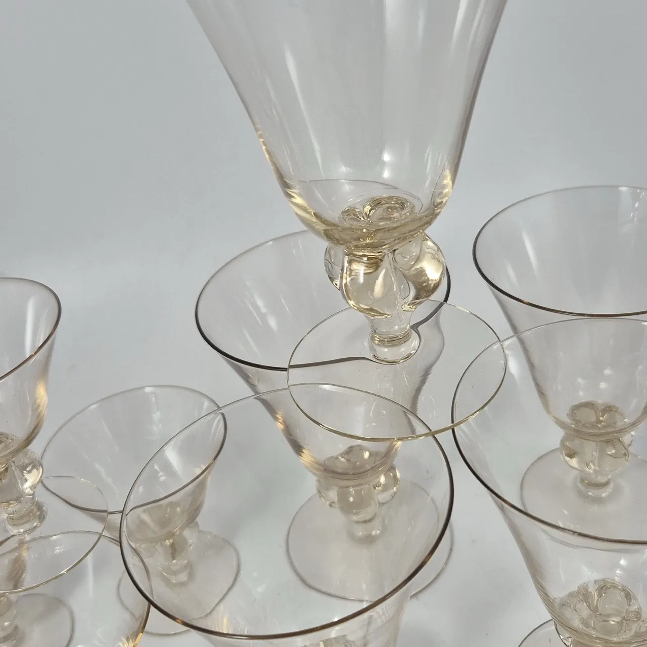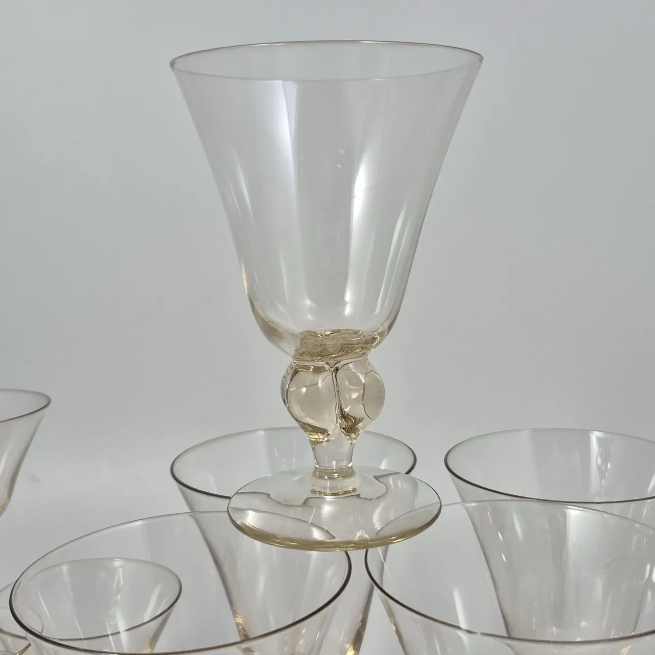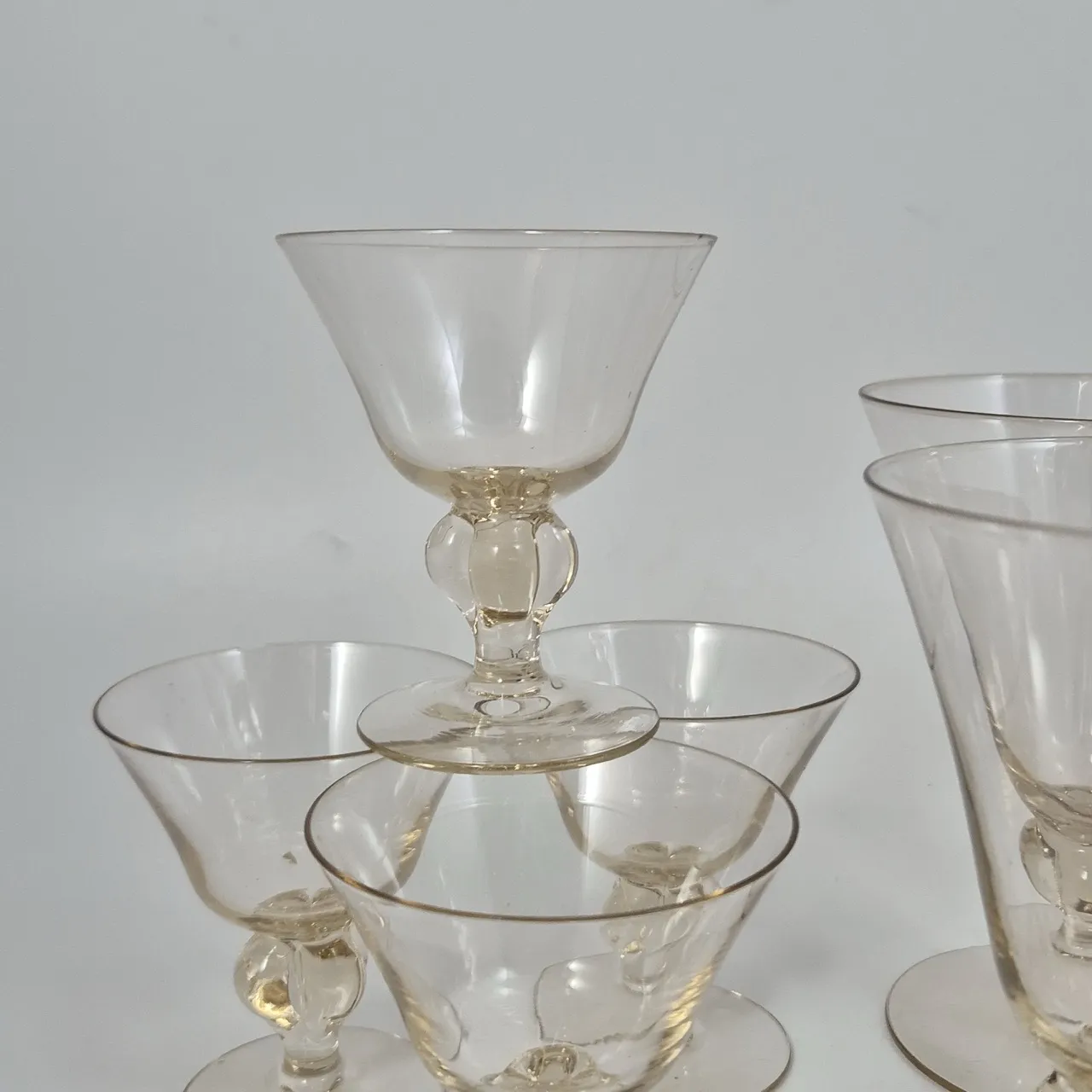 Vinglas "Gulli" Skruf. 5st ett har nagg . H.14cm. Likörglas 4st ett har nagg