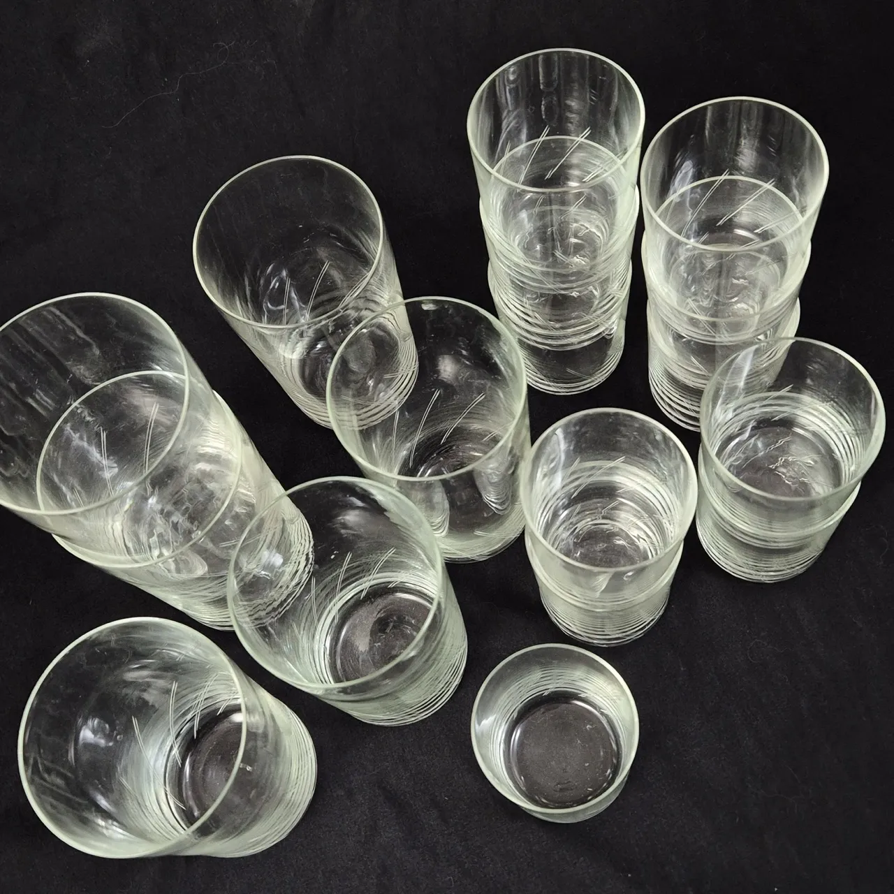 Vintage glas, dekorslipade. 11st selterglas, 6st större glas H.12.5cm