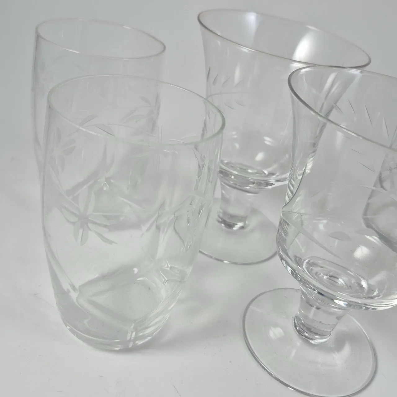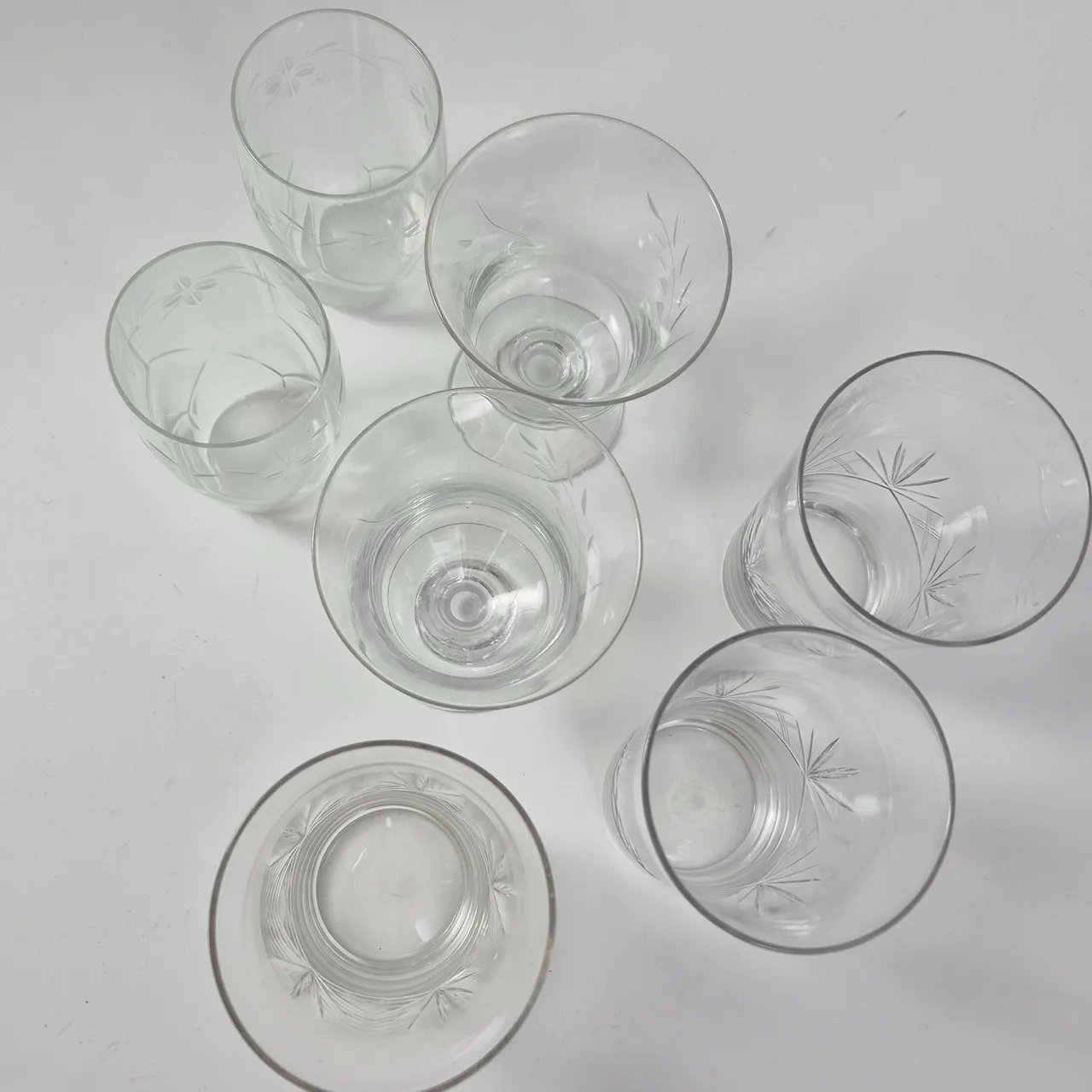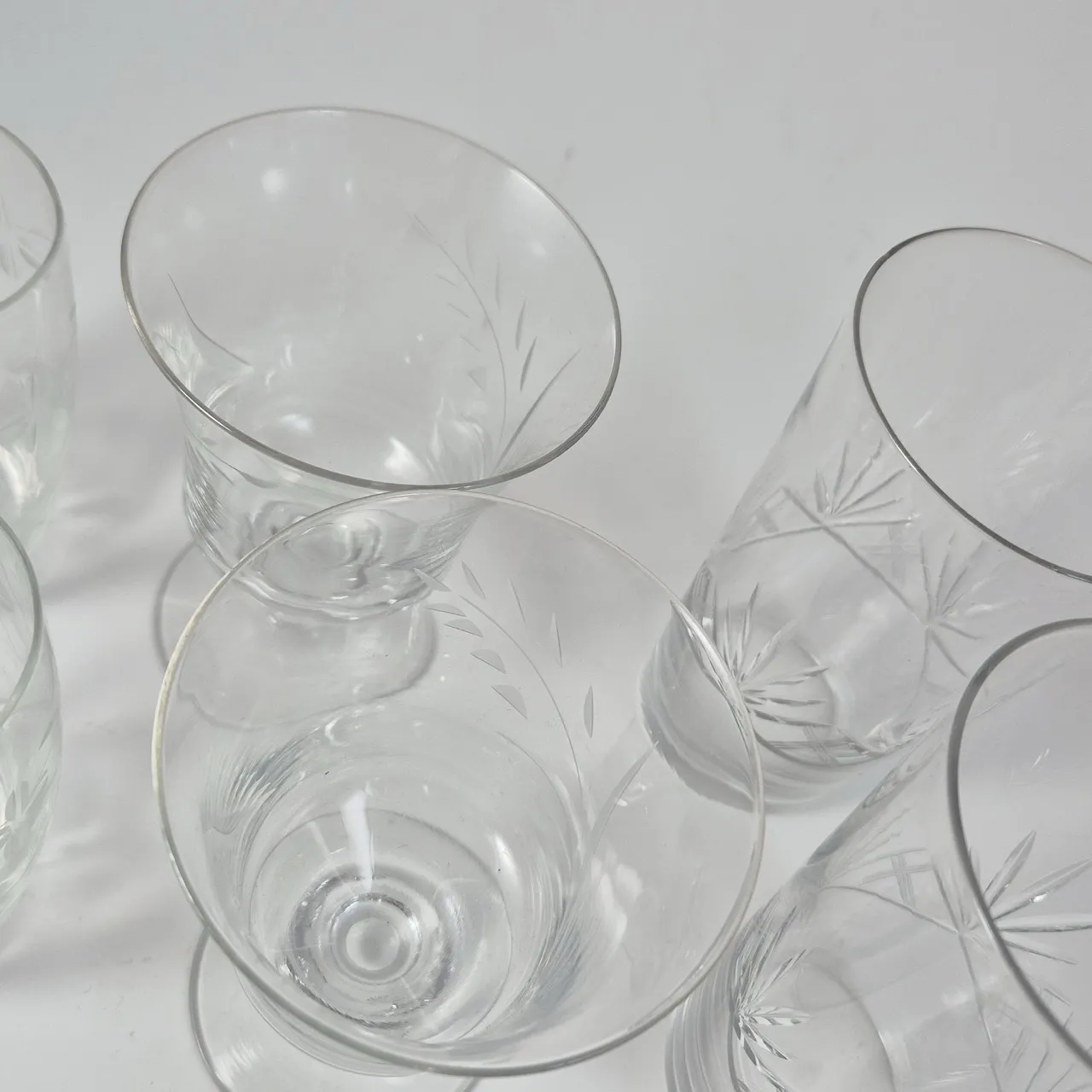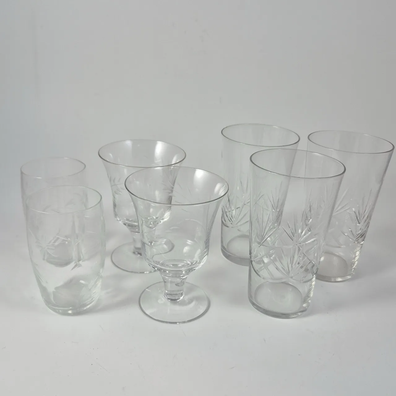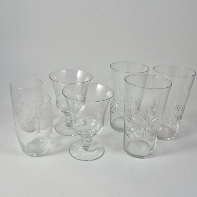 Olika fina äldre glas med slipad dekor. 2+2+3st . Högsta H.14cm