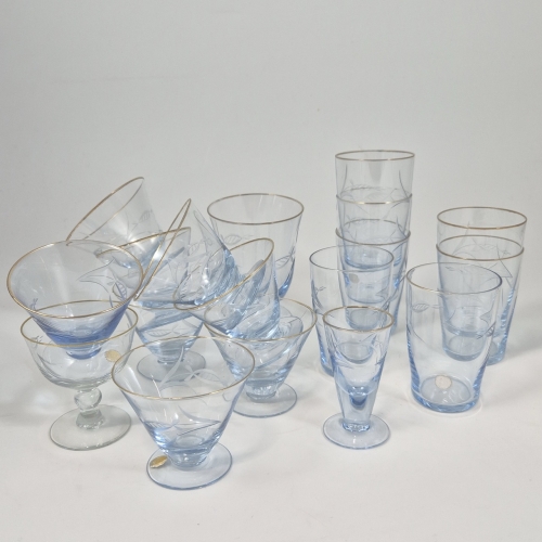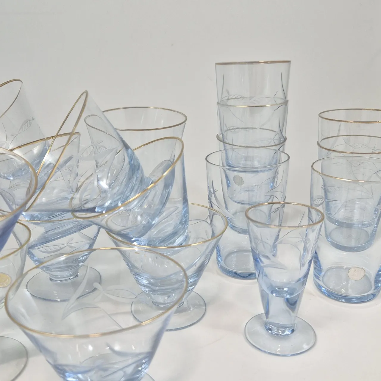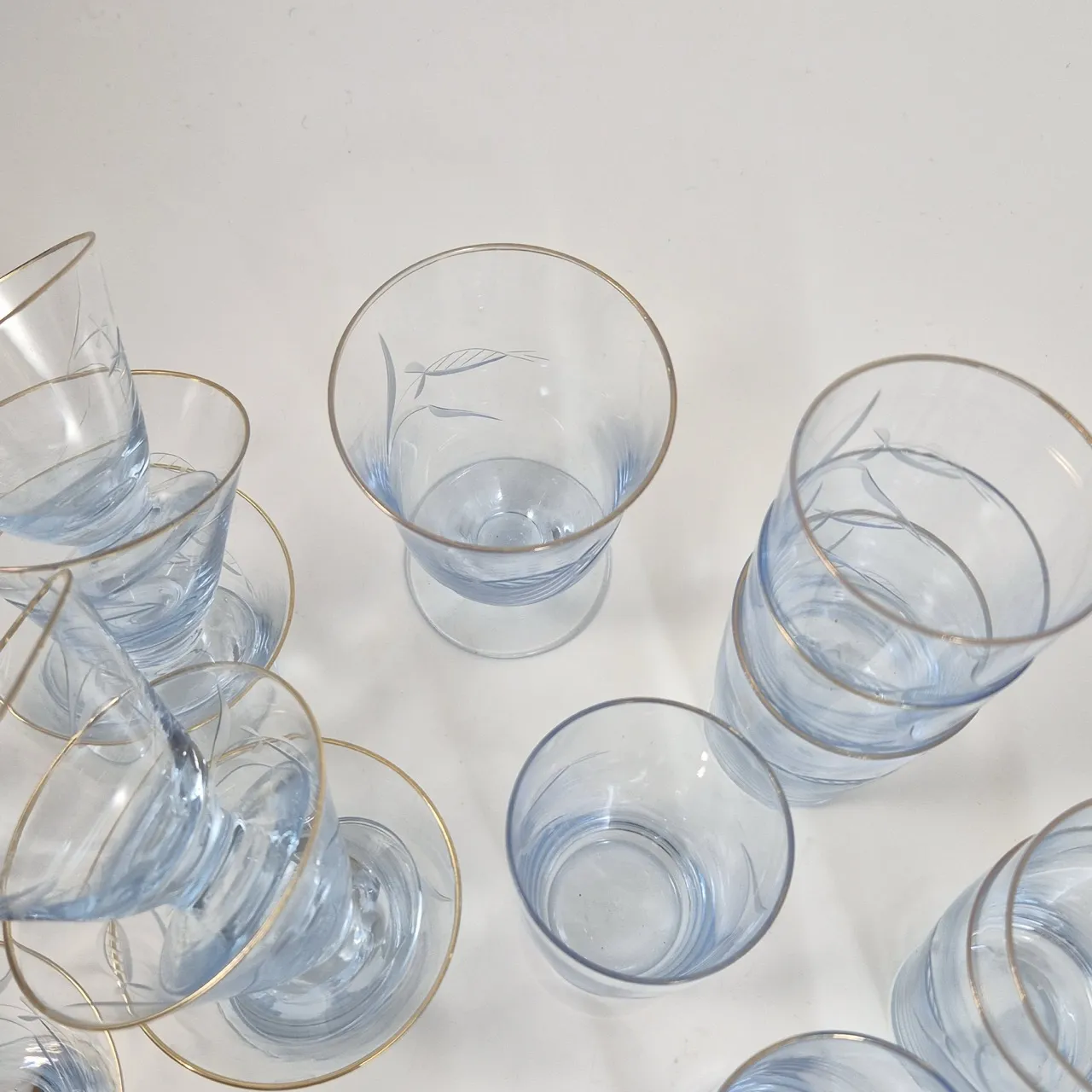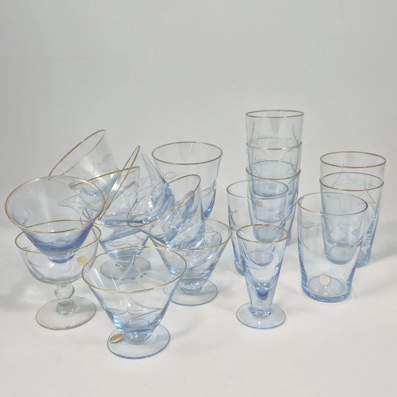 Glas i blå ton med slipad dekor och guldkant. Tunna och sådär lyxiga!