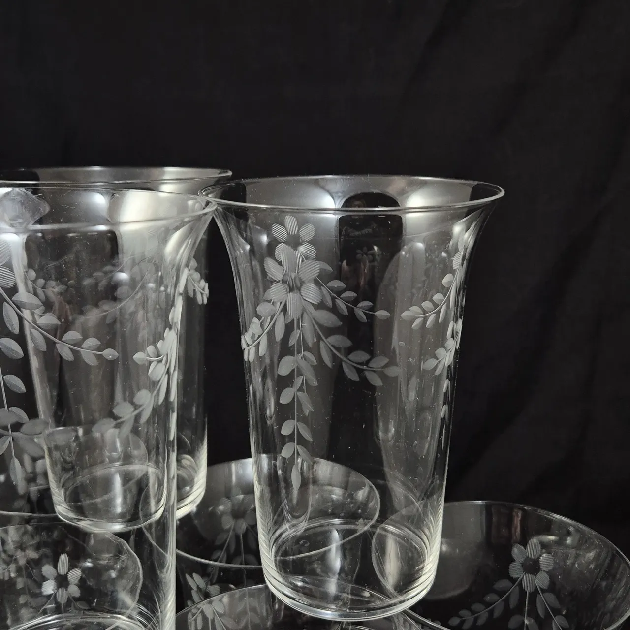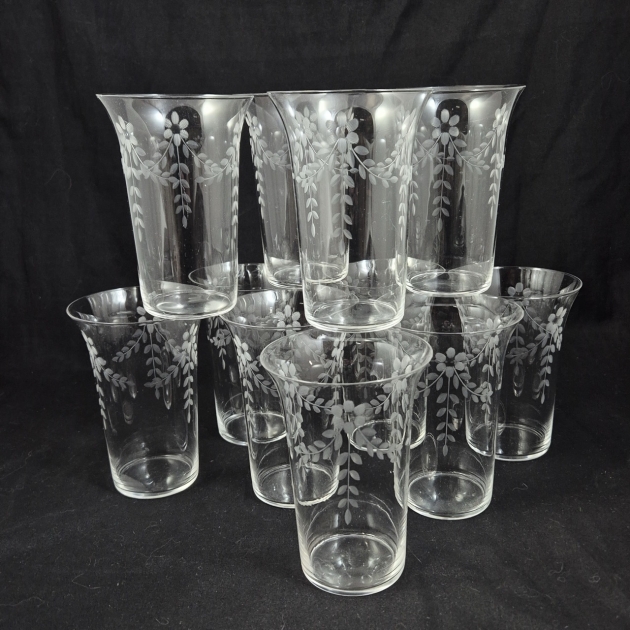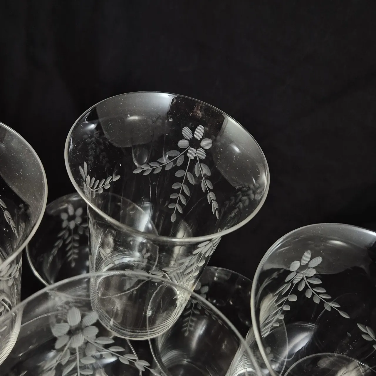 Vintage jättestora glas med slipad dekor, tunna och fina. 11st