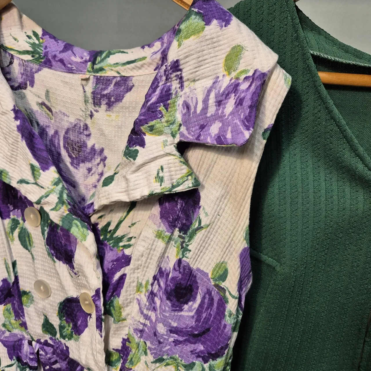 Den rosa/gröna (bomull) har bröstmått 106cm