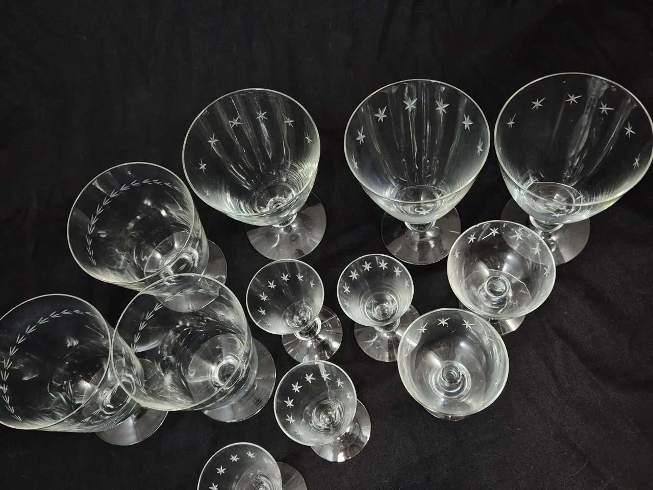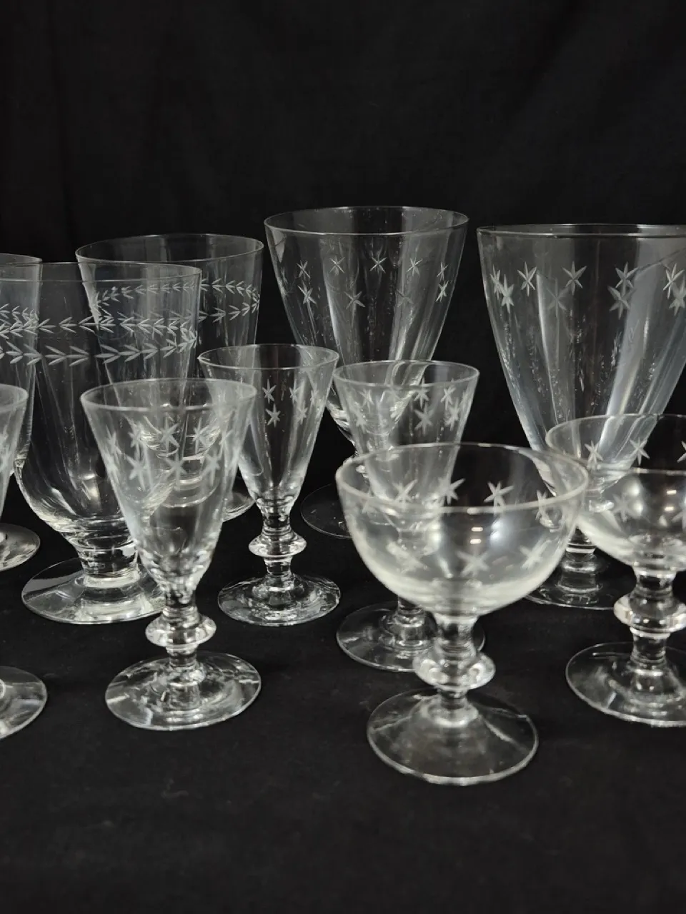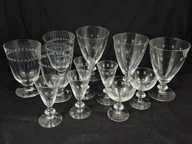 6st vinglas, tunna och dekorslipade . H. 12cm