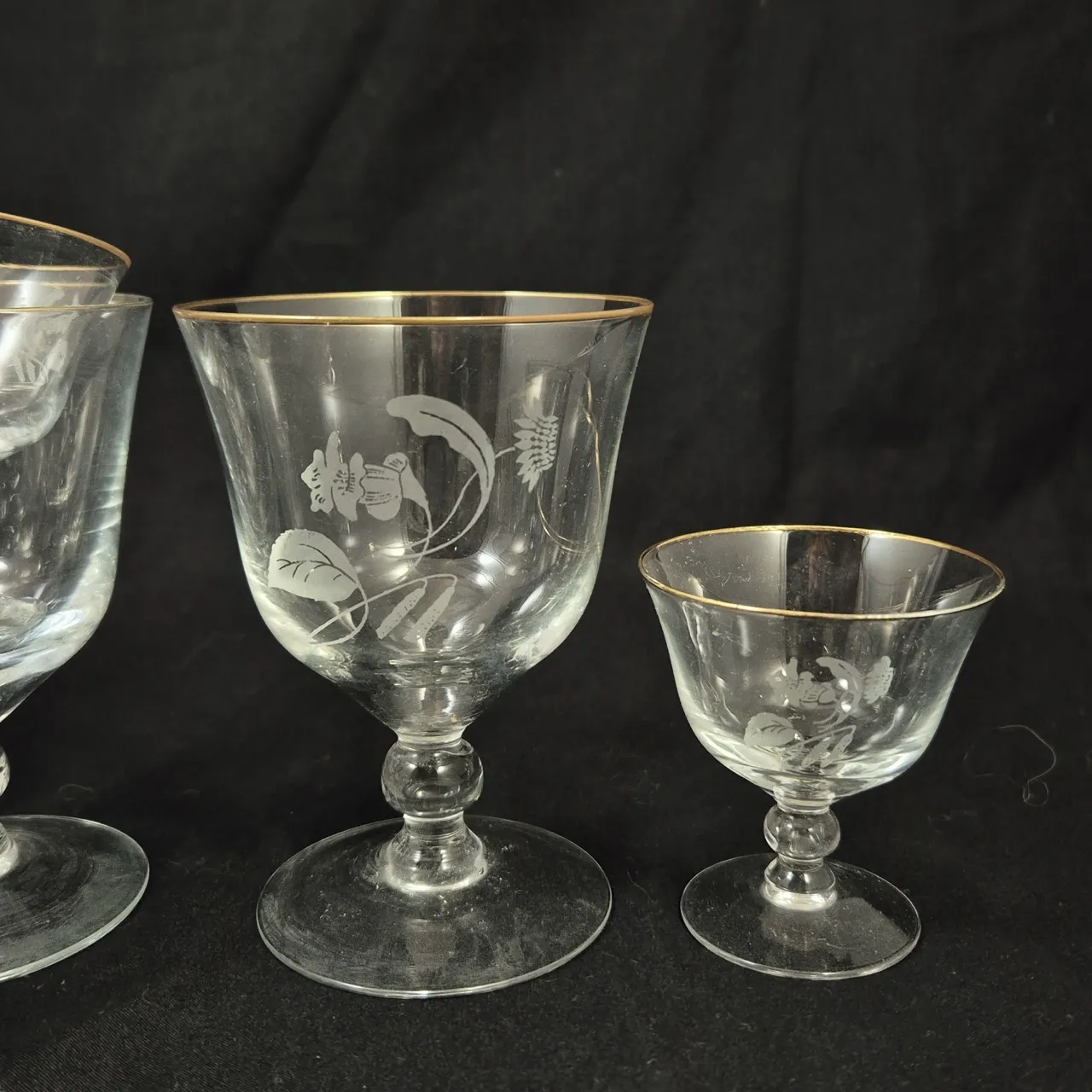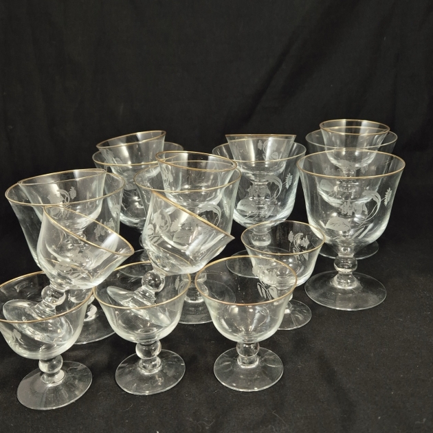Vintage glas med slipad dekor och guldkant