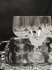 Vitvinsglas, likörglas, ljuslykta, vas, bricka