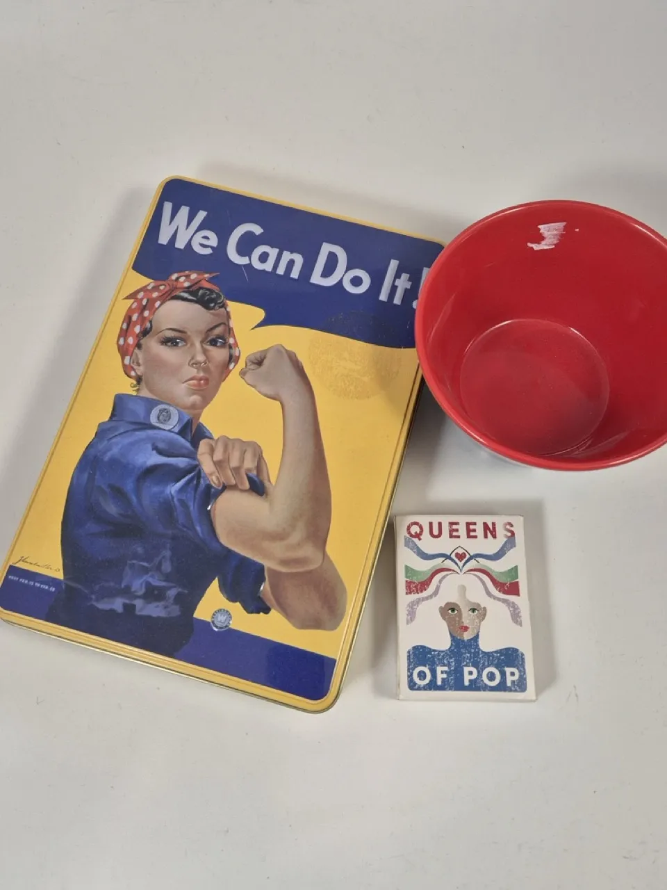 We can do it! Låda, plåt 25x17 , repor och ett konstigt märke finns