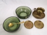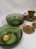 2 st glas skålar i grönt Gullaskruf Vinetta, en har nagg . 14cm diameter